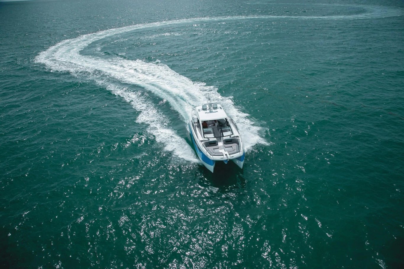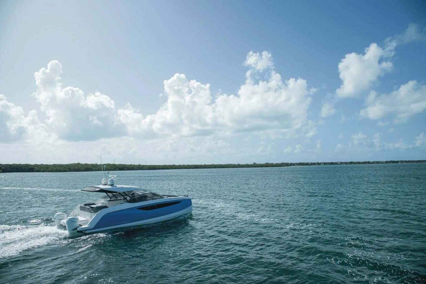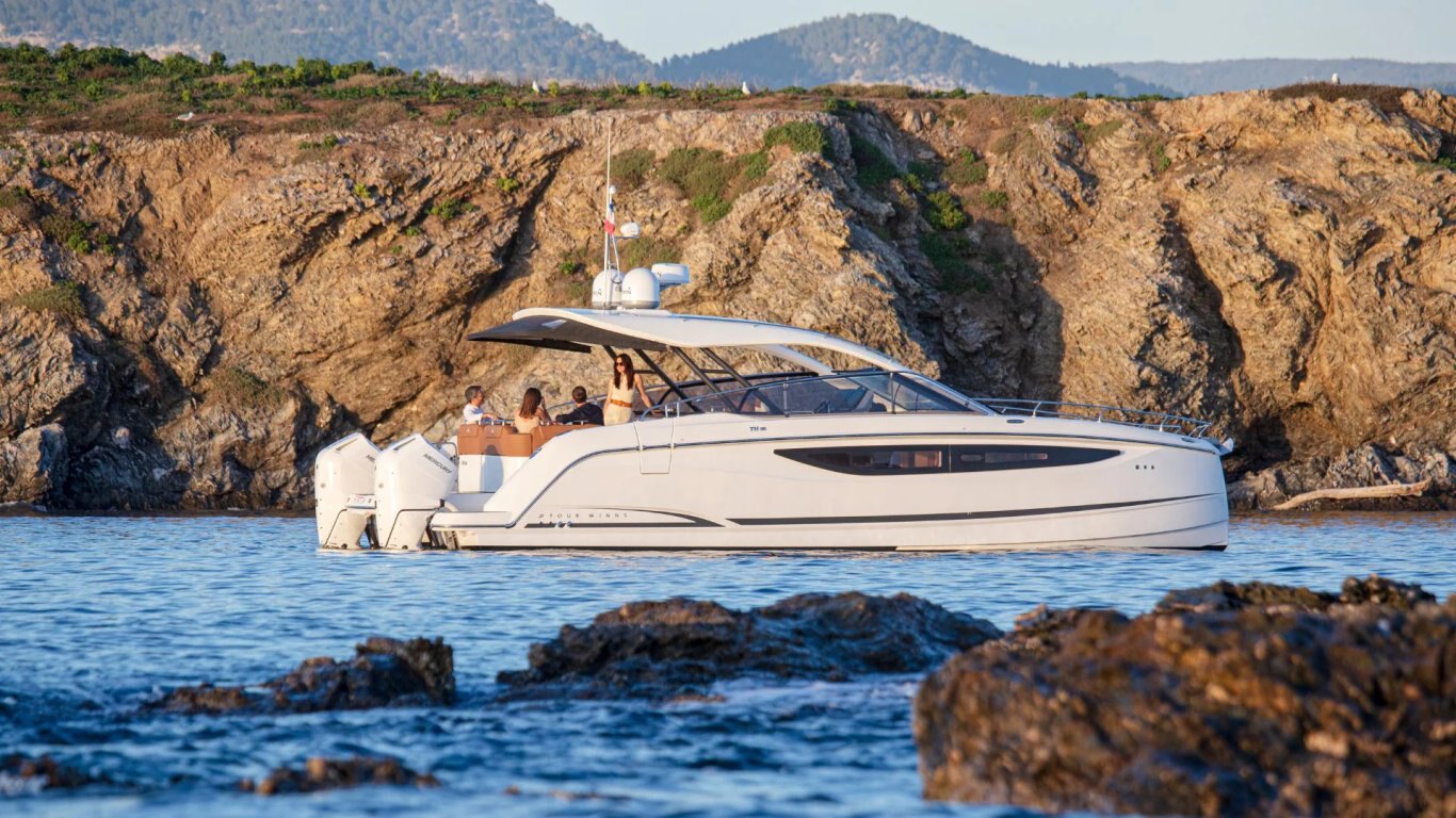 Renowned for their passion for aesthetics and style, the famous Italian Garroni Design studio drew inspiration from Four Winns’ bowriders series. They incorporated the spacious layout and sleek lines into the TH36, making it instantly recognizable on the water.