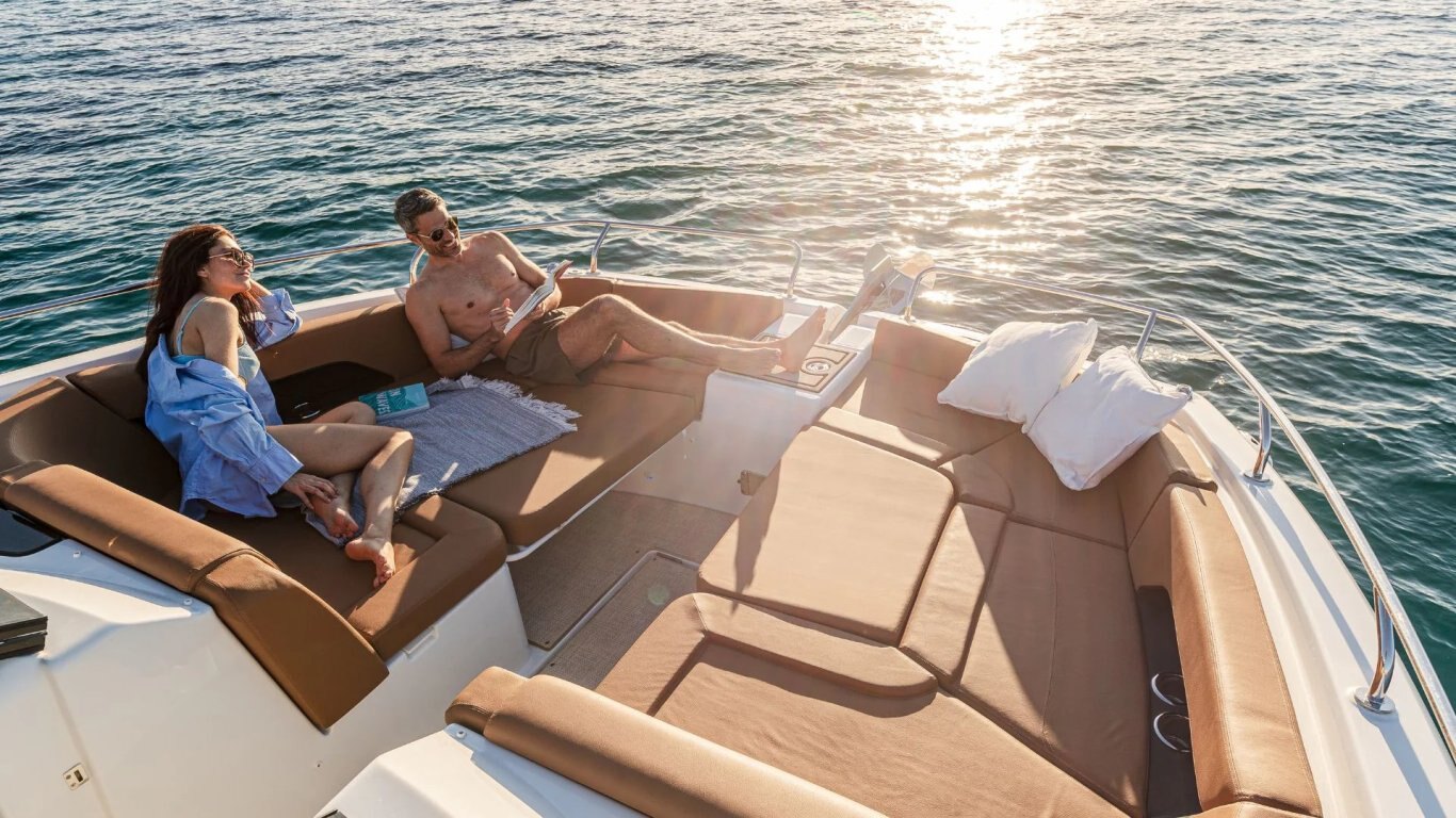 The unique and versatile aft cockpit benches offer the flexibility to form a wide-open space. The vast sunbeds can be open to the sea or connected for a cozy and relaxing social area creating the finest moments on the water with those you love.