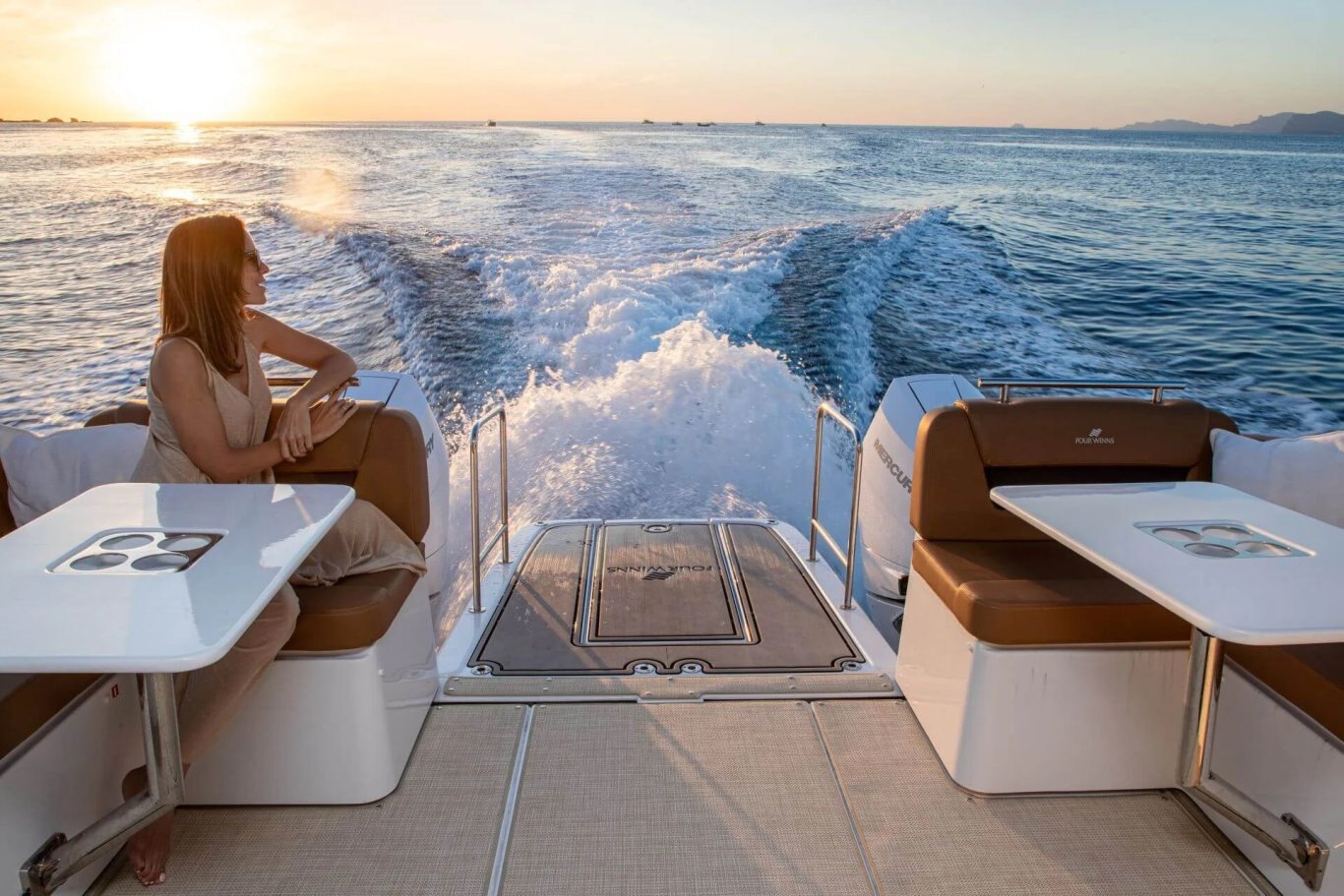 Four Winns boaters can enjoy year-round cruising in comfort thanks to the TH38’s full-height windscreen and new sport-top options, offering enhanced weather protection and a refined boating experience in all seasons.