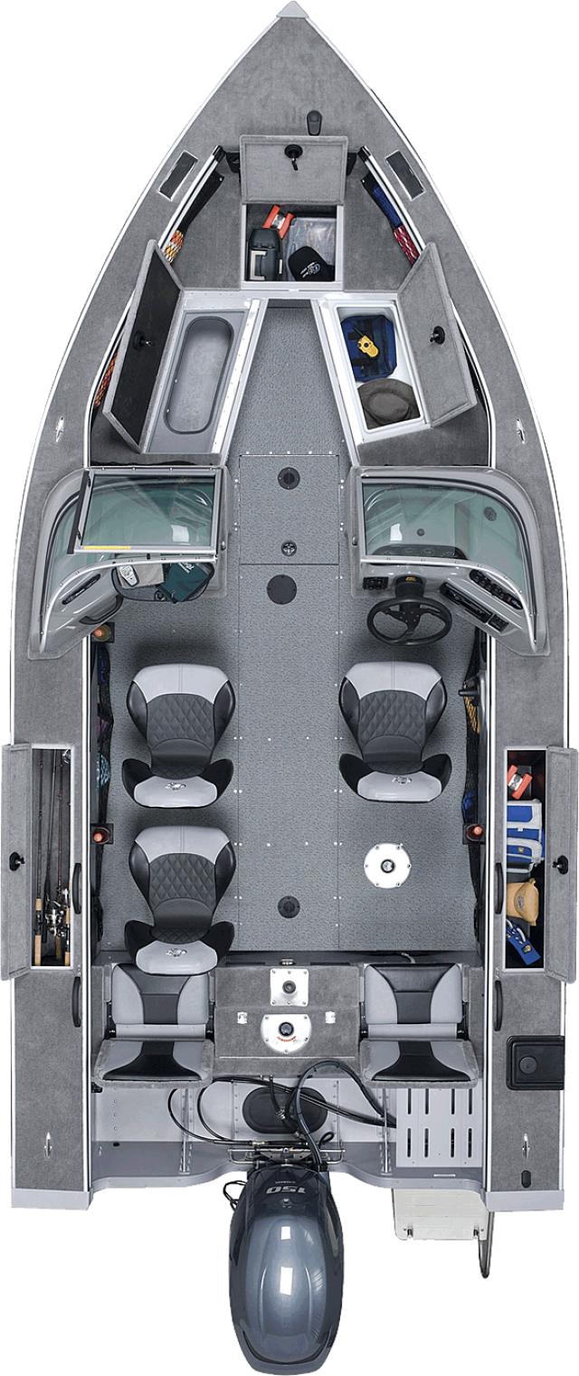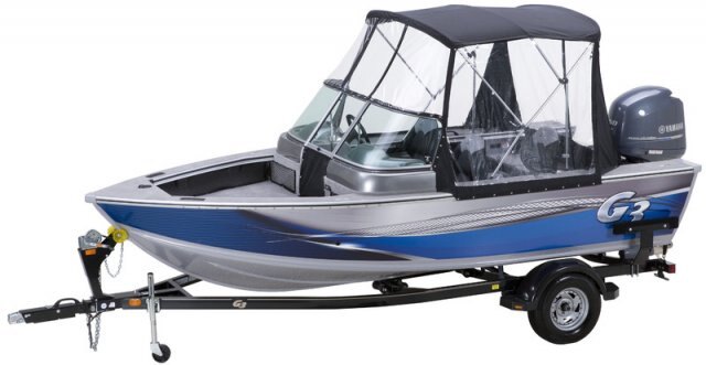 Riveted three-piece, .100 gauge hull with GX2 double-plated bow and bottom ♦ Painted urethane high-glosscolorwithcustomgraphics ♦ Bear® powder-coated 4" tubular steel Trail Guard® trailer with locking detachable tongue, space saving and security system ♦ 14” radial tires with heavy-dutysteppadplasticfenders ♦ Standard with brakes and LED lighting