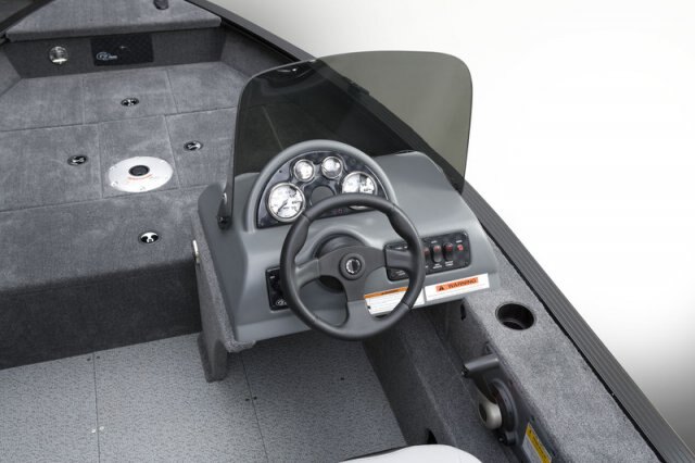 The perfect marriage of performance and value, the new V170 C offers anglers an economical Deep-V featured to take on serious fish- ing, no matter the species. The spacious front deck, 84" beam, and non-skid vinyl cockpit area combine to make a secure and stable platform to go after bass or walleye with equal confidence. A 41", 27 gallon divided livewell holds two limits with ease. Match the V170 C with a Yamaha four-stroke 90, and you have the beginnings of a beautiful relationship.