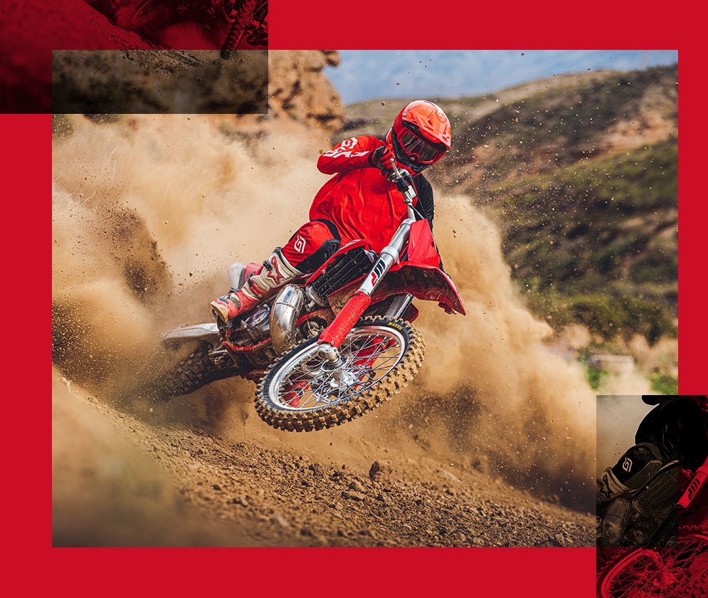 FRAMEThe technology in our frames ensures riders enjoy playful handling and an energetic feeling on any motocross tracks. Underneath the red powder coating there's a lightweight chromium molybdenum steel, hydro-formed, laser-cut and robot-welded chassis that's built to perform. Designed to be rigid where it needs to be rigid and to flex where flex is needed, it provides exceptional rider feedback, energy absorption and straight-line stability.