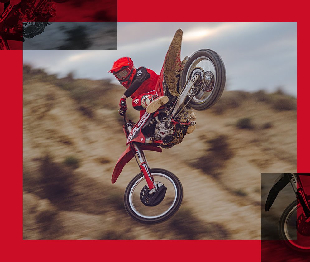 FRAMEThe technology in our frames ensures riders enjoy playful handling and an energetic feeling on any motocross tracks. Underneath the red powder coating there's a lightweight chromium molybdenum steel, hydro-formed, laser-cut and robot-welded chassis that's built to perform. Designed to be rigid where it needs to be rigid and to flex where flex is needed, it provides exceptional rider feedback, energy absorption and straight-line stability.