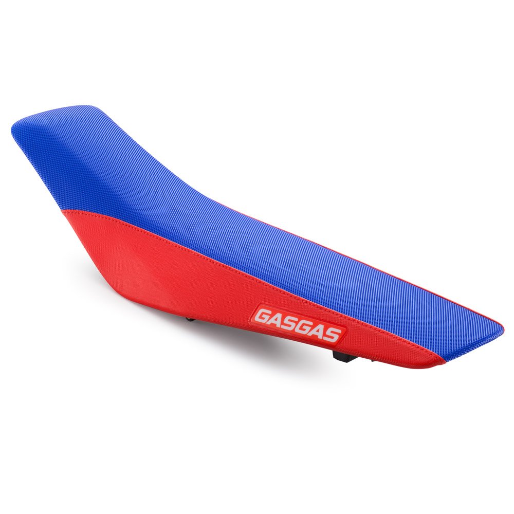 Keeping you firmly planted when getting on the gas out of corners, the new, super-grippy red and blue seat cover holds you firm and blends in perfectly with the graphics. Style and function at its finest. |