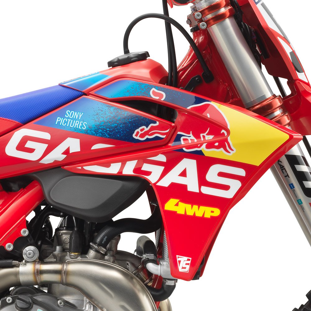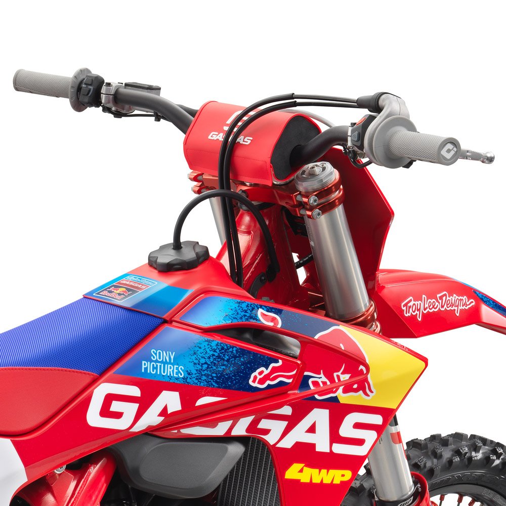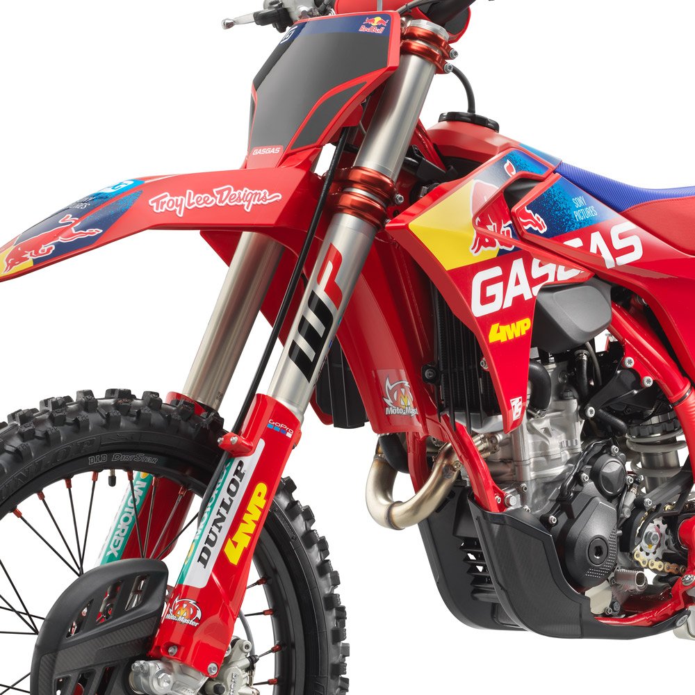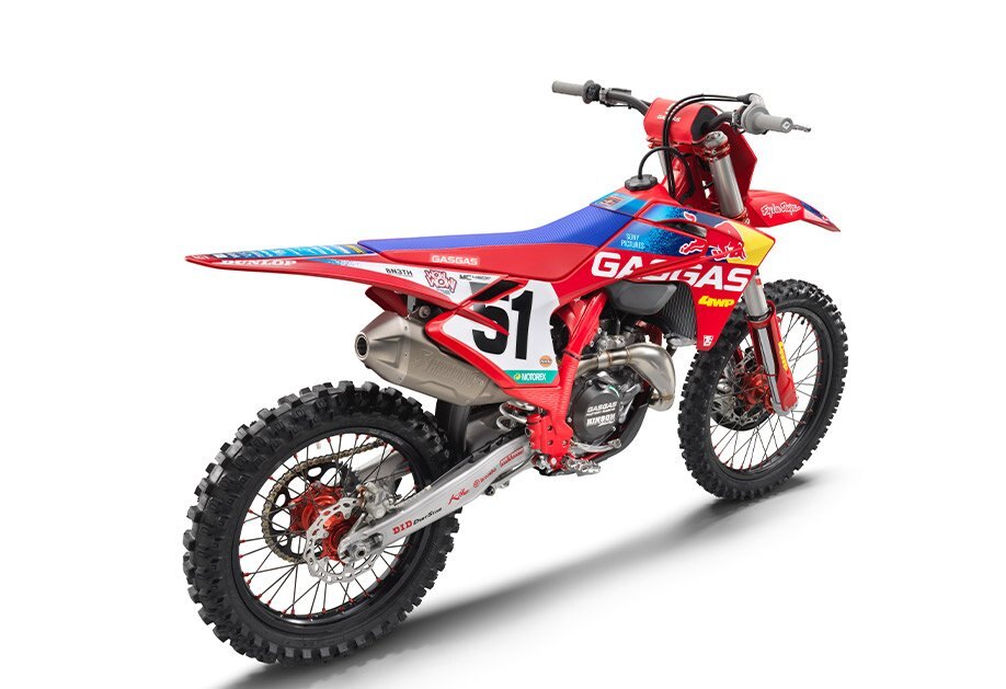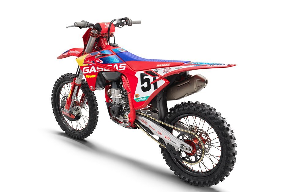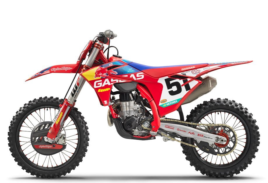 An MC 450F Factory Edition isn't a true replica bike without a full set of race team graphics crowned with the race number of Justin Barcia 51. And the best part is, most of the Troy Lee Designs/Red Bull/GASGAS Factory Racing stickers are applied using in-mold technology when the plastics are made. So there's no peeling, scratching, or staining which means this bike will always stand out from the crowd! |