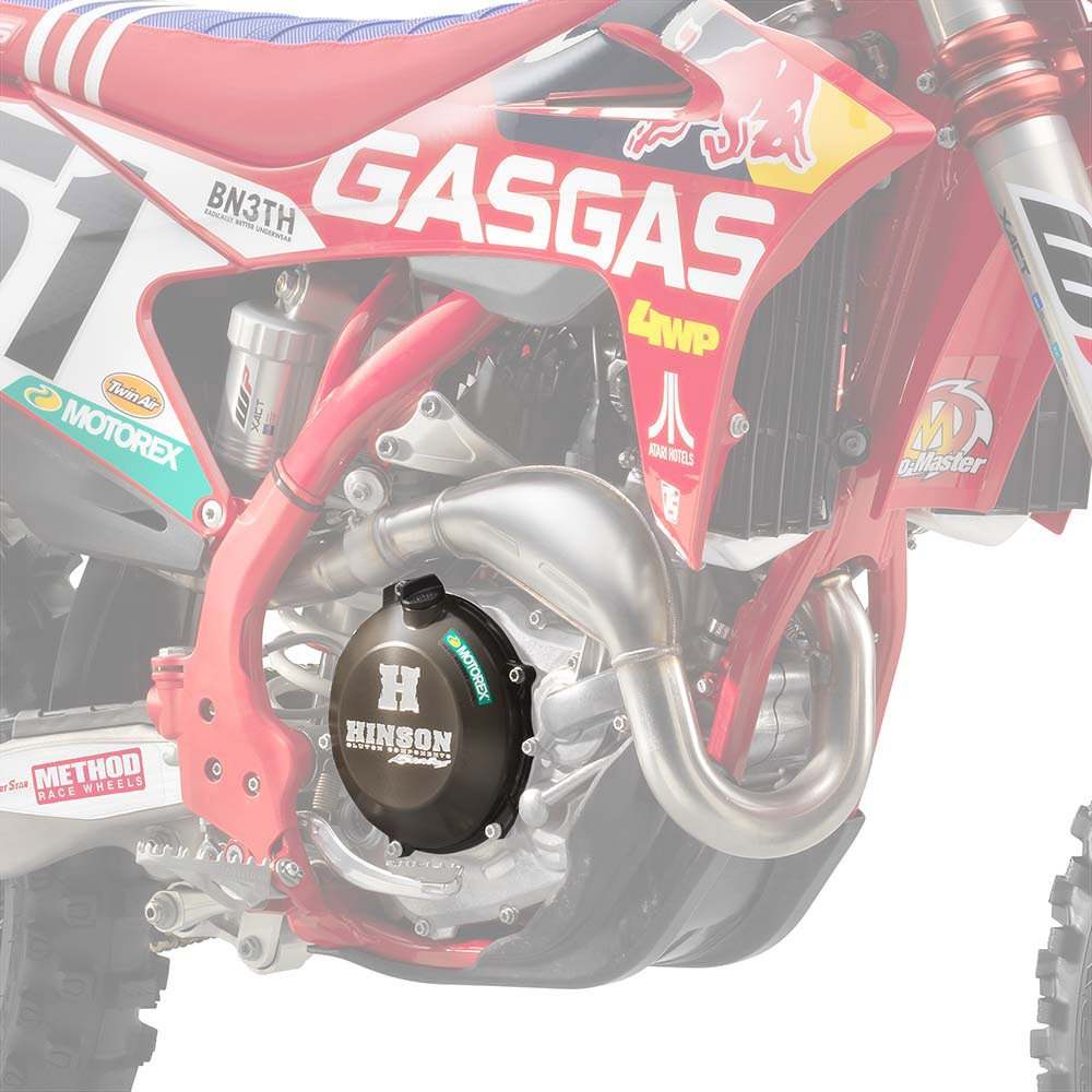Stronger than stock and precision machined from billet T-6 aluminum, the Hinson Clutch Cover is finished with a hard black coating to protect against boot wear for a long lasting, factory race team appearance. It also ties in nicely with the rest of the mean and moody looking MC 450F Troy Lee Designs bike!