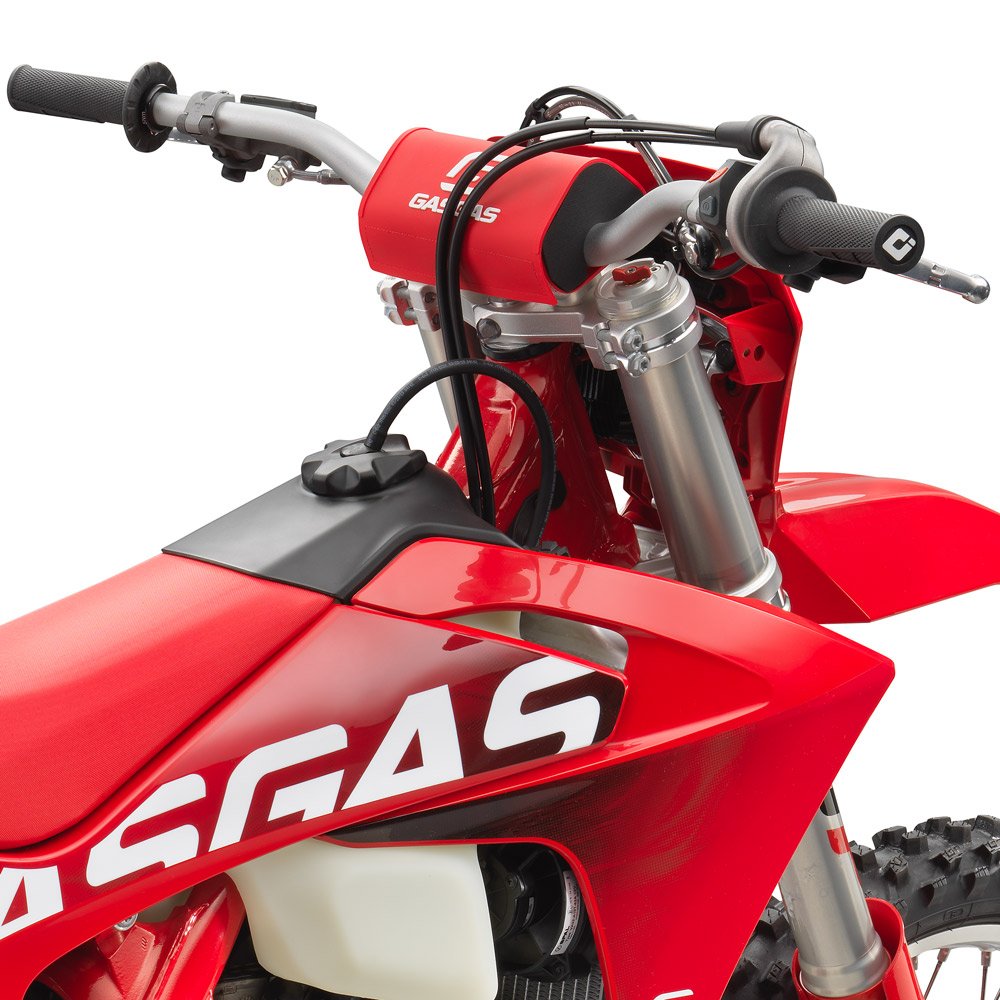 The all-new tank holds nine liters of fuel but it remains just as slim as the old one. Made from transparent polythene, riders can easily see how much fuel is inside the tank with a threaded filler cap providing a secure and reliable seal. With an integrated fuel pump allowing the tank to be emptied further before refuelling is needed, extended rides are not a problem for this GASGAS!