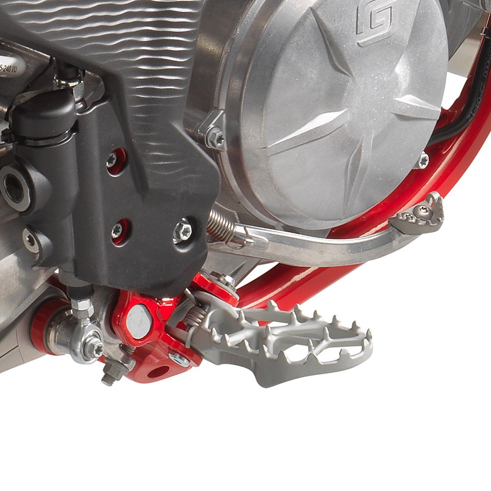 Bigger is better when it comes to footpegs, which is why on the new models there's a bigger platform for better control. Plus, thanks to a new mounting design, they're placed further inward on the frame, which makes them less prone to catching the edge of deep ruts and a like.