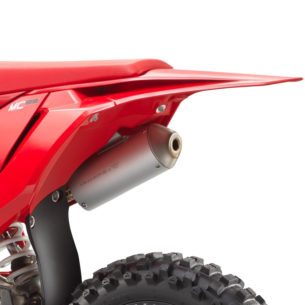 Made in a 3-dimensional stamping process our 2-stroke pipes are then robot welded to ensure the best levels of quality and durability. Key to ensuring the MC 85 revs freely, the exhaust aides the bike's outstanding motor performance and all-round rideability |