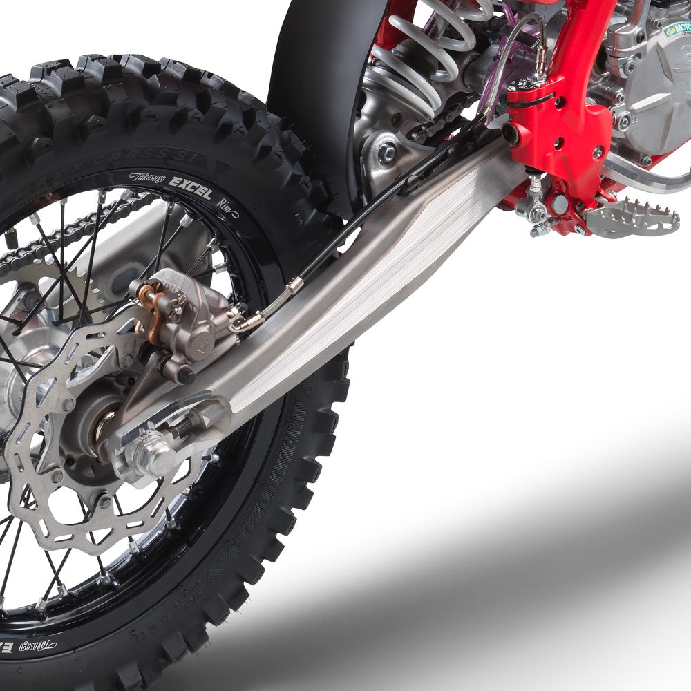 Our one-piece aluminum swingarm offers exceptional strength and the lowest possible weight. Made using a gravity die-cast production process, prominent chain adjustment marks are clearly visible for quick and easy chain adjustment. |