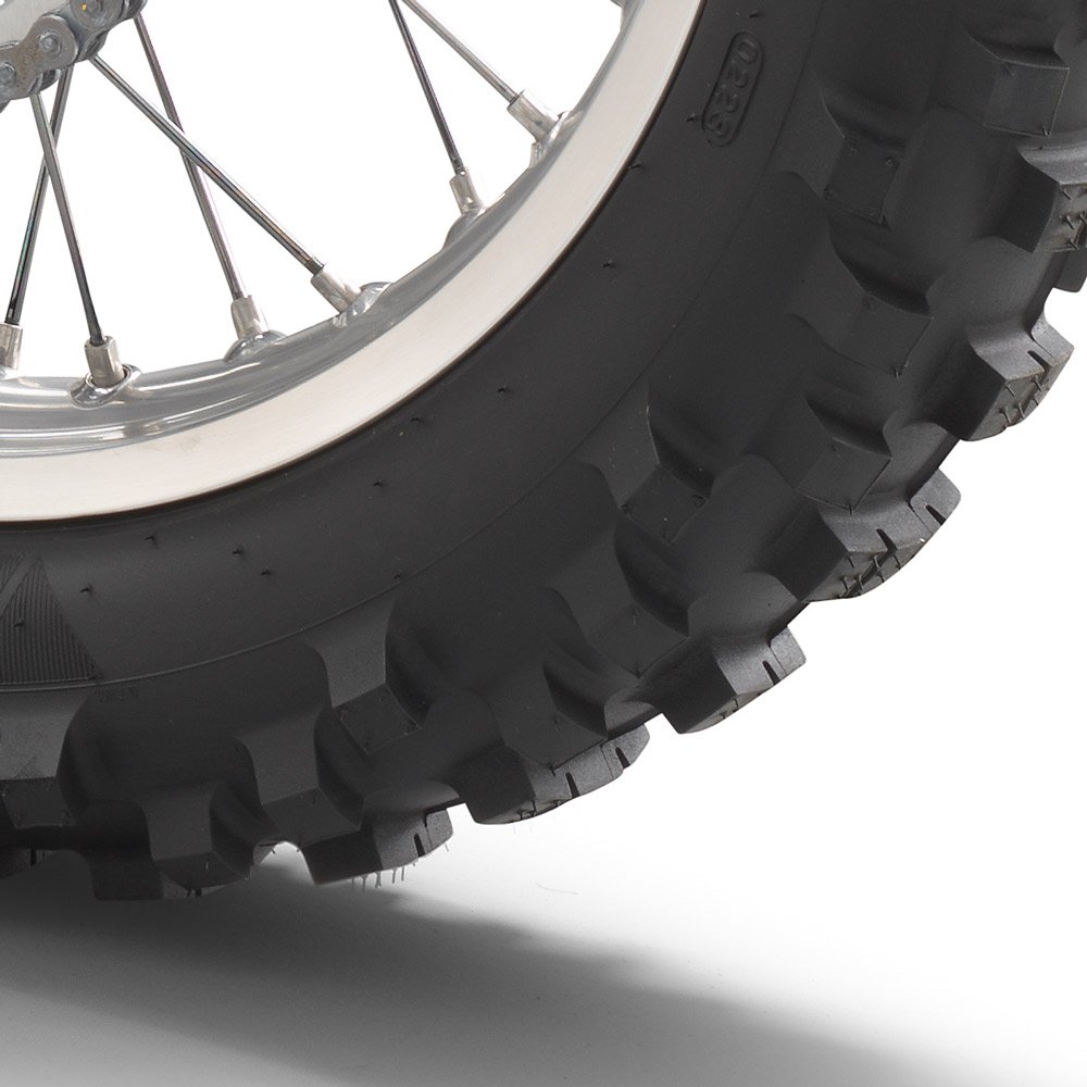 One of the only components carried over from the outgoing generation of GASGAS enduro bikes are the Maxxis MaxxEnduro tires. Need to know why? Because they work so well on a wide variety of terrain and they're super-durable too. After all, who likes changing tires? |