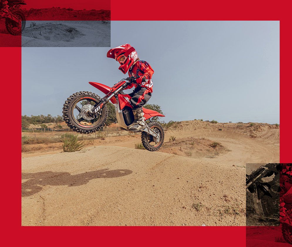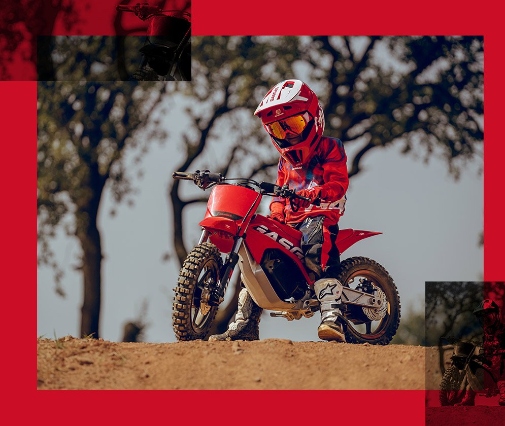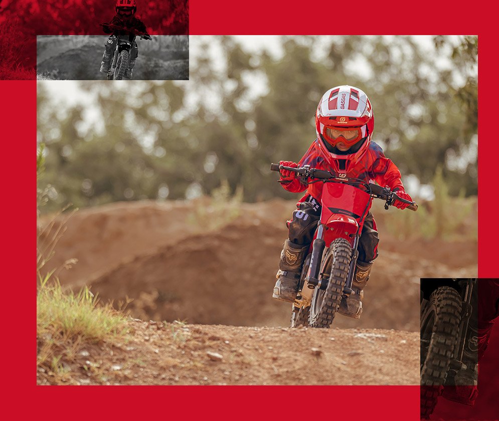 There's a new GASGAS dirt bike in town - the MC-E 2! All new, and all red, it's been designed for thrill-seeking youngsters (35-51 inches tall) that want to get to grips with offroad riding. It's battery-powered, inexpensive to run, with a full charge lasting well over an hour. It also has a ridiculously quick recharging time, which means the MC-E 2 offers day long fun for all riders. Knowing that all kids will have an absolute blast tearing around the backyard on this little bike, we've fitted the MC-E 2 with three power modes and multiple options to adjust the ergonomics, so controlled progression is guaranteed. For eager kids, dirt bike riding starts right here.