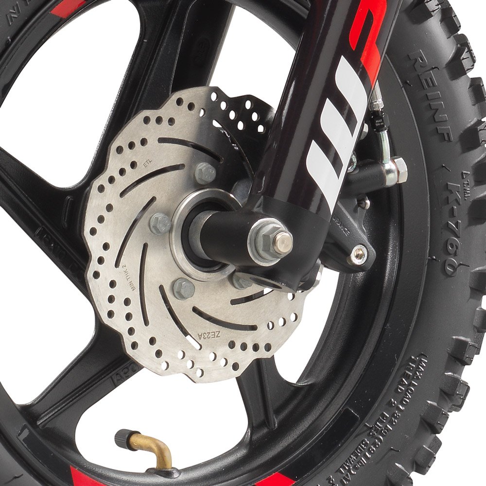 Just like our bigger dirt bikes, the MC-E 2 features WP suspension. Up front, the hydraulic forks offers 90mm of travel with the shock providing 70mm of travel, as well as pre-load adjustment. With its capable suspension soaking up bumps and jumps with ease, the MC-E 2 allows youngsters to discover and enjoy riding offroad. Which, as we all know, is awesome!