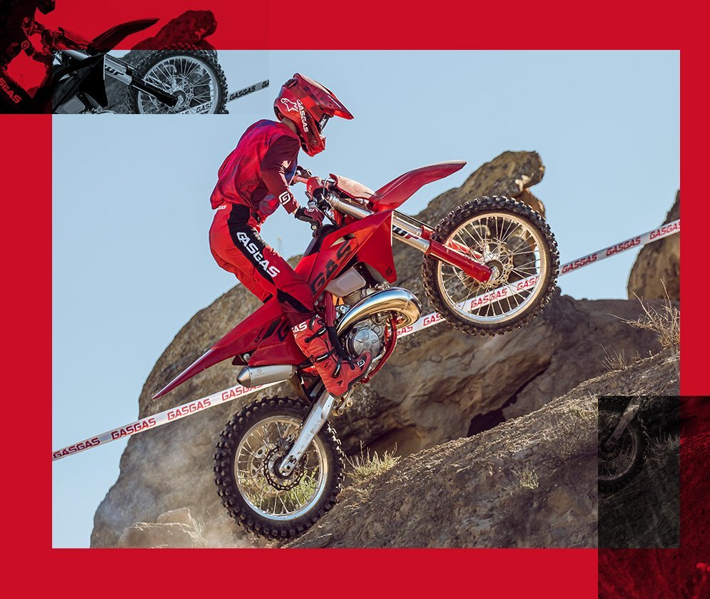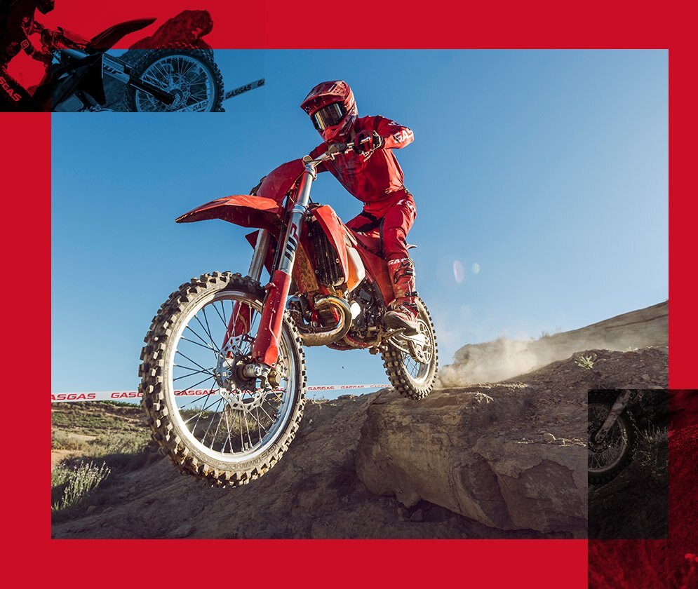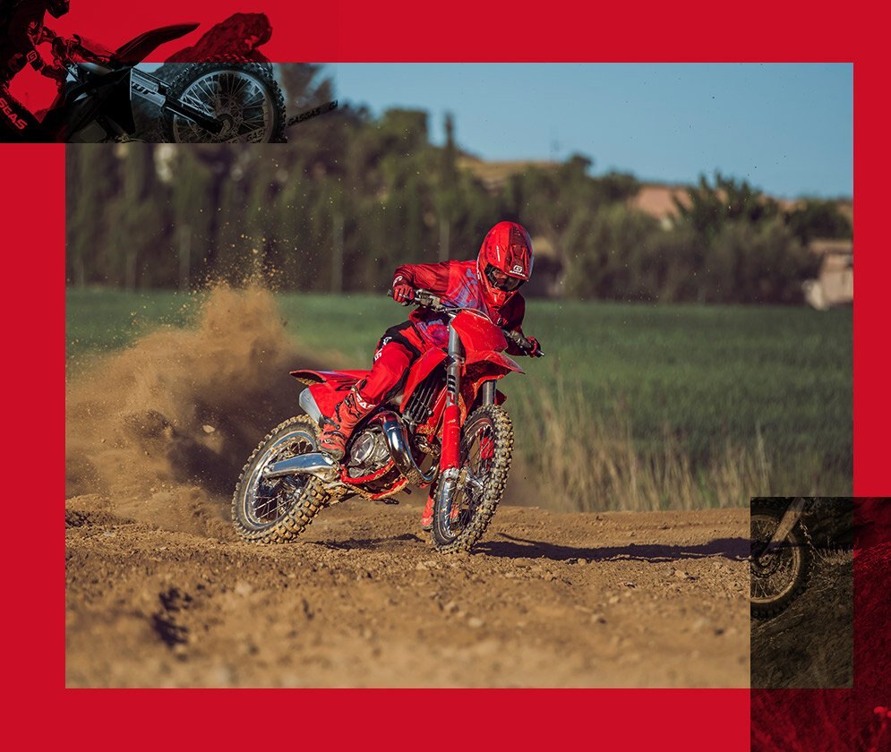 Fast is fun but slowing down is essential, which is why all GASGAS dirt bikes are fitted with high quality Braktec calipers and controls. Speaking of controls, the rear brake pedal is now considerably stronger to prevent it from getting bent out of shape in a crash or catching the ground when you're railing through a deep rut. When you combine those Braktec calipers with GASGAS specific brake disks, 260mm up front and 220mm at the rear, the end result is amazing braking performance. This all means that all riders can stay on the gas longer and brake later into corners. And we all know what that leads to... faster lap times!