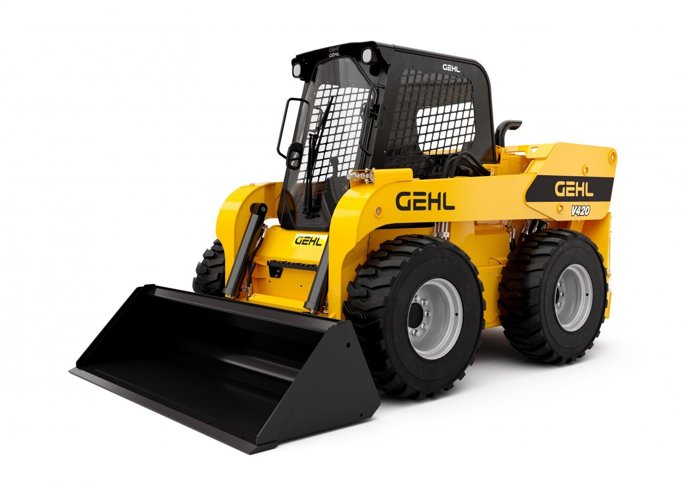 We've come to the monster of them all, the V420. Lift height? Yes. Lift capacity? Oh Yes! True raw power and durability? Like none other and built to impress. 120HP. Yes, you read that right. This loader is in a class of it's own. Anything from flatwork in construction to filling the back of a dump truck, this machine won't let you down. Drive one today at your local dealer and you'll notice the difference when you feel those 120 horses behind you. All while not giving up anything in maneuverability. Specially engineered body type with straight loader arms below the operator's eyesight gives the V420 unmatched visibility. You gotta see drive it to believe it!