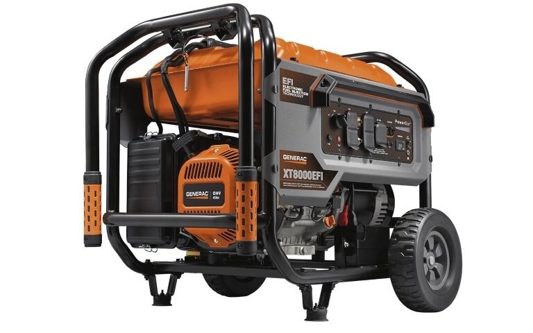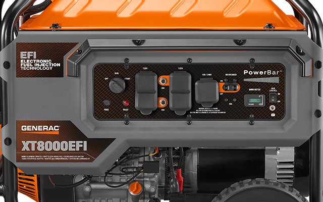 Generac 459cc EFI engine delivers the right amount of power to get the best performance and efficiency out of your engine Low-oil shutdown automatically safeguards engine from damage Large-capacity fuel tank with incorporated fuel gauge provided durability and extended run times Electric start provides easy and reliable start-up Battery included; self-charging while in use Idle control conserves fuel and reduces noise TruePower™ technology provides clean, smooth operation of sensitive electronics, tools and appliances ControlGuard™ provide added protection to the control panel Covered outlets provide added protection from the environment and rugged working conditions Hour meter tracks maintenance intervals 10” solid wheels make portability easy and efficient Fold-down locking handle allows for easy storage