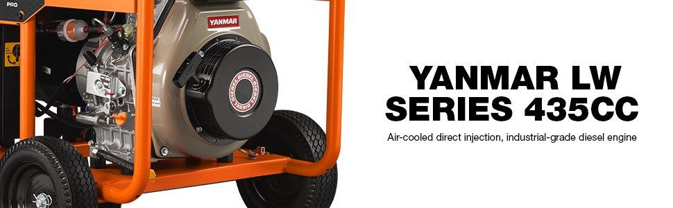 Integrated lifting eye allows for easy transport and security on the jobsite 12-gallon fuel tank provides a long run-time of 32.4 hours @ 50% load Yanmar LW Series 435cc air-cooled direct injection, industrial-grade diesel engine 1-1/4” steel cradle for added strength and durability Battery and Portability kit including handles, wheels and front foot sold separately