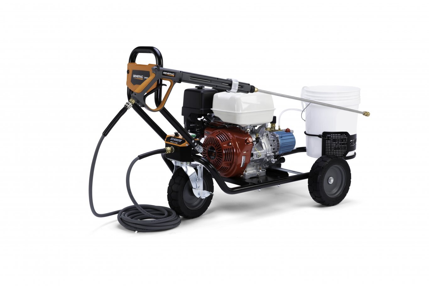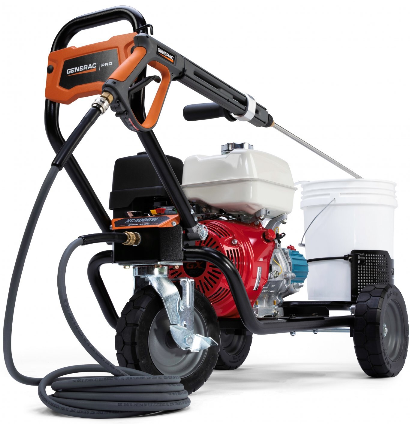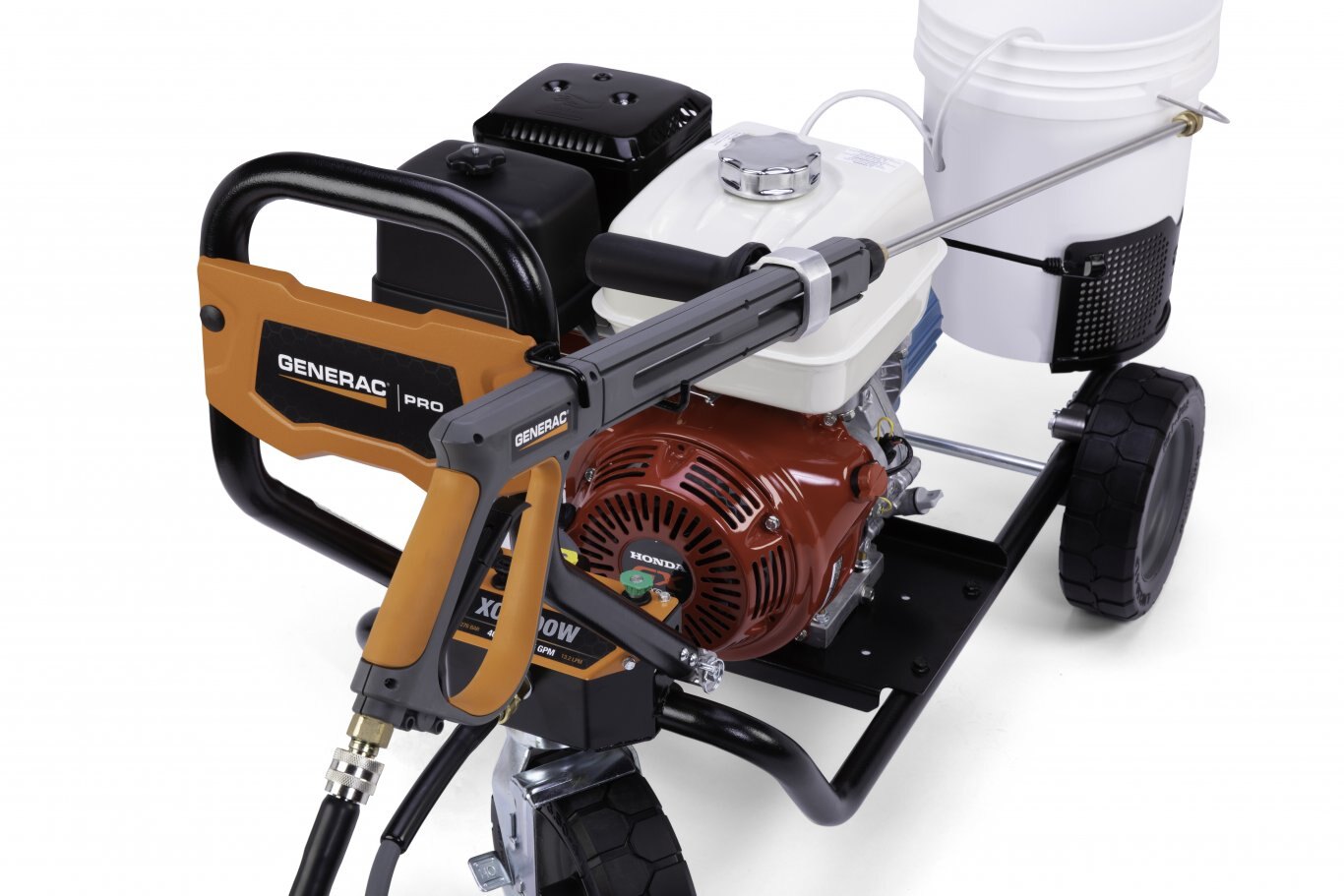 Generac XC Series pressure washers are designed for the rigors of commercial pressure washer use. Built with a 3-wheel design that saves time by moving with you around the jobsite to prevent downtime. The XC Series also holds more, with an integrated 5 gallon bucket holder that can hold cleaning detergent or additional onboard storage for other tools or accessories. The unit is also designed to save space, with a folding handle bar and collapsible bucket holder that allows for a compact footprint during transport and storage. XC Series pressure washers deliver commercial grade cleaning performance that helps you complete projects faster and more efficiently.