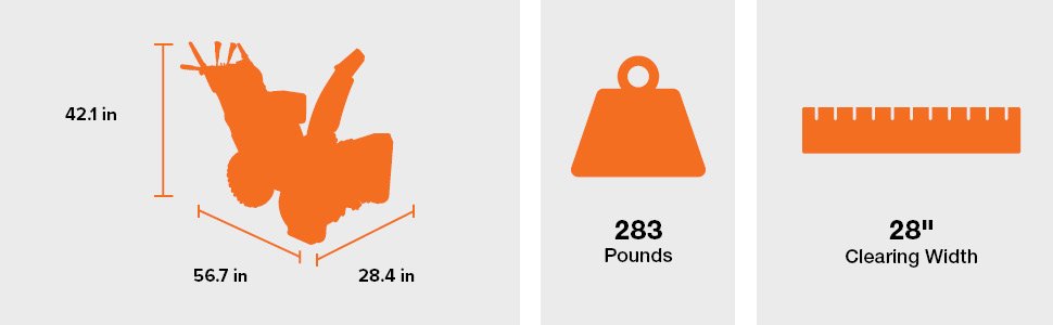 28’’ x 21’’ Intake Housing - Sturdy 9-gauge steel scraper blade lets you clear right down to pavement.