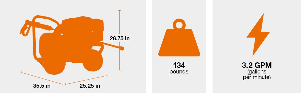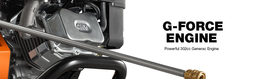 Generac G-Force Engine- Durable and powerful. Pressure Control Valve- Easily adjusts to just the right amount of pressure needed. Oversized Pneumatic Wheels- Can take on any type of terrain with ease. Steel Reinforced Hose- Never worry about leaks or difficulty connecting to the unit.