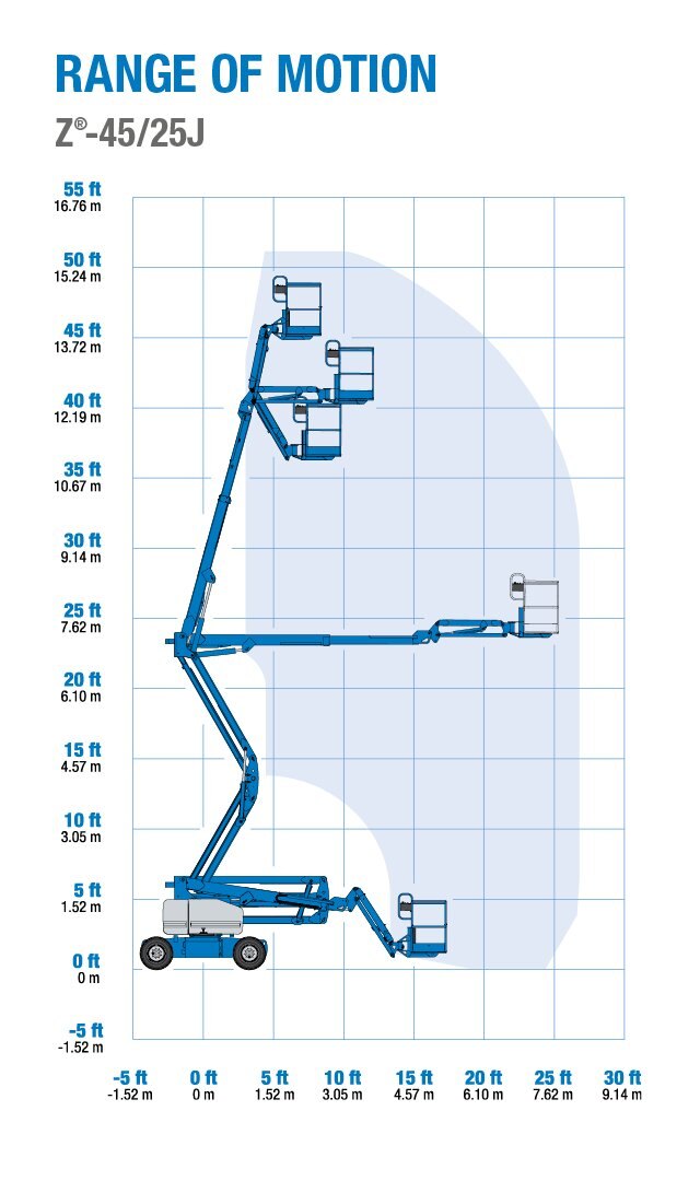 Self-leveling platform features a 160° hydraulic rotation for Genie Z-45/25 J models
