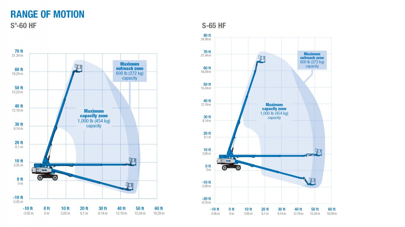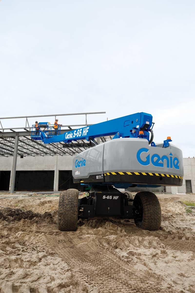 Telescopic Boom Lift The Genie® S®-60 HF and S-65 HF high float telescopic booms are designed to perform heavy-lifting tasks in sensitive turf conditions, such as sand and turf ground conditions. Engineered to “float” on soft or delicate surfaces, the Genie S-60 and S-65 HF booms protect softer surfaces during operation that could be damaged by the more aggressive tread on regular rough terrain tires.