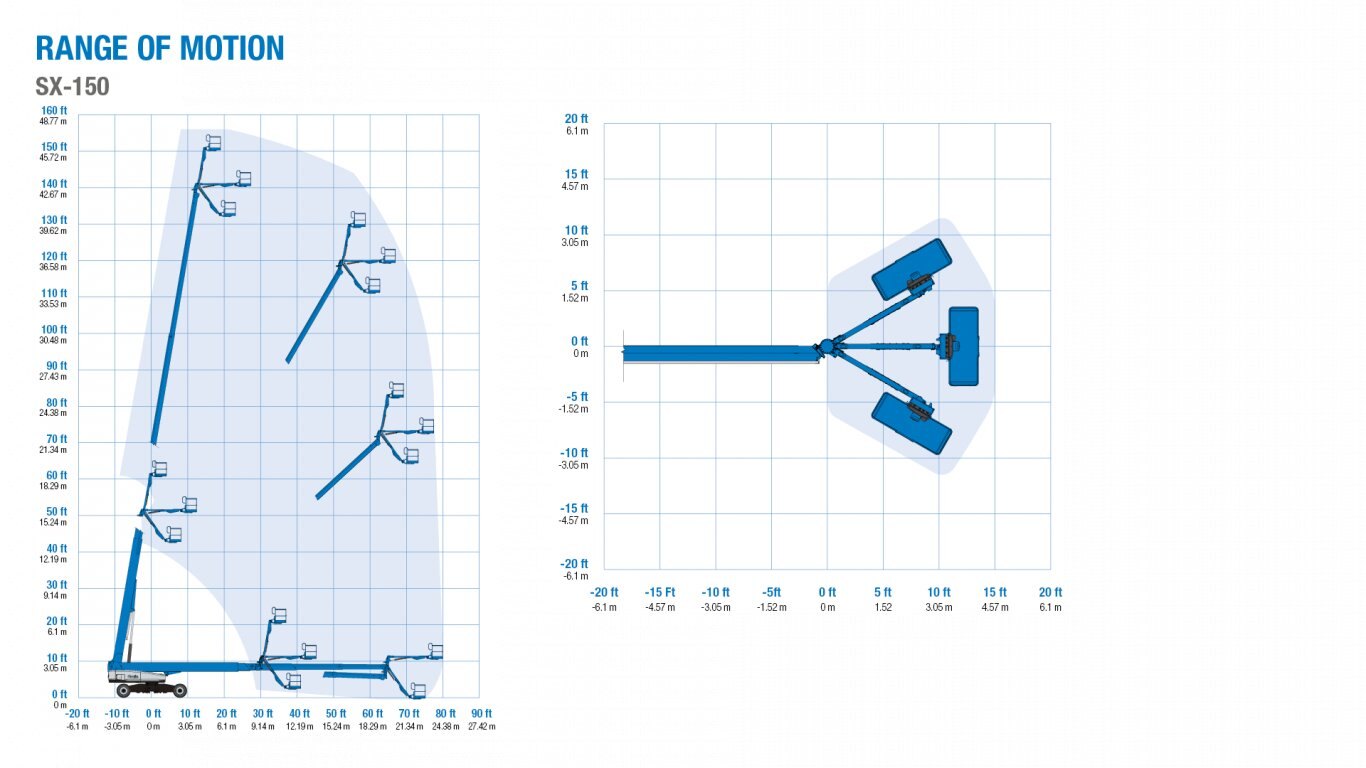Features a working envelope ideal for the most extreme access jobs with a vertical reach of 152 ft (46.33 m) and a horizontal reach of 80 ft (24.4 m)