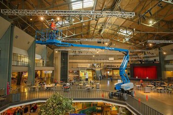 Thanks to its quiet, clean performance and four-wheel drive abilities, this Genie® Z®-45 DC is a versatile, all-electric eco-friendly articulating boom lift, ideal for a number of outdoor and indoor applications on construction sites, sports arenas, malls, facilities, and even challenging pedestrian areas.