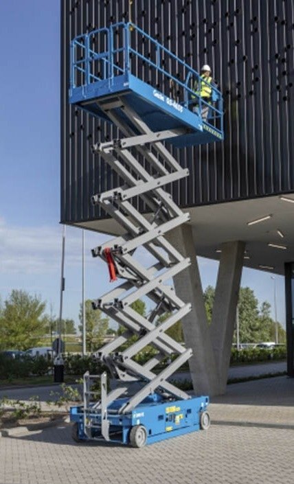 The Genie® GS™-4655 E-Drive slab scissor lift is a robust and eco-friendly machine engineered with the state-of-the-art Genie AC electric E-Drive system, for unmatched performance and runtime in high indoor and outdoor jobsites requiring a significant amount of driving. It offers operators an excellent combination of working height and lifting capacity capabilities with powerful electric AC drive motors to maximize jobsite productivity.