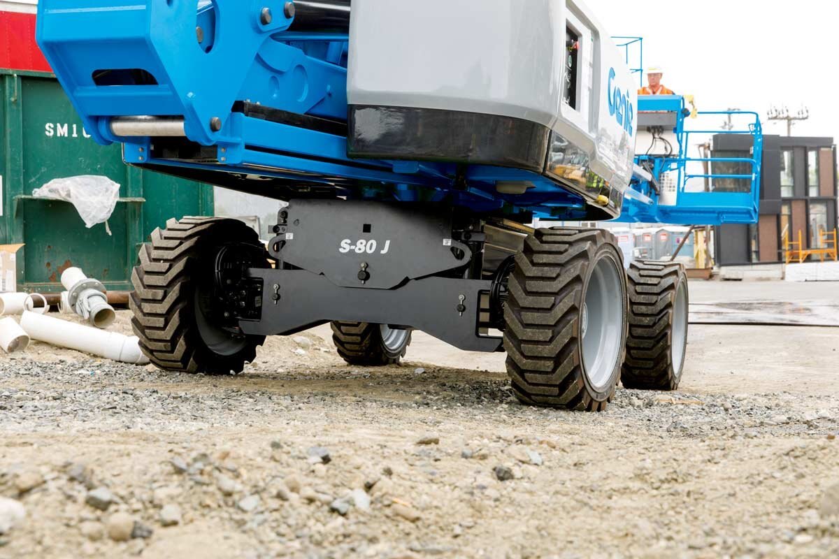 Genie® S®-80 J telescopic boom offers the essential performance that operators need to get work done at height. It offers the right solution to get work done at height, including leading unrestricted platform capacity of 660 lb (300 kg), allowing for two occupants plus tools. For increased jobsite productivity, it is the first and only boom model in the 80 ft (26 m) working height category to offer a tracked option.