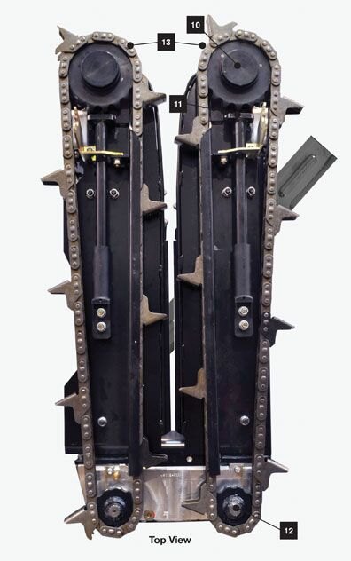 Aggressive yet gentle feeding, Geringhoff offers the industry's toughest gathering chains. Nine posi-loc lugs create an efficient and durable transfer of the crop from field to stripper plate. Tremendous reliability and unrivaled performance acre after acre.