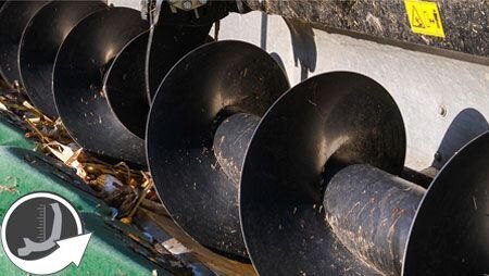 Elite XL headers offer a swift and efficient transfer of your crop. The varied pitch of the fins gently moves your yield along the outer wings then increases flow as material advances towards the feeder house. The auger's balanced combination of pitch, paddle, size, and speed reduces fluff build up, maximizes your yield and reduces operator fatigue.