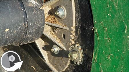 PTO  - Both the PTO and auger drives engage with an oversize, spring loaded dog clutch allowing engagement of the drive without slipping or jumping of the drives.