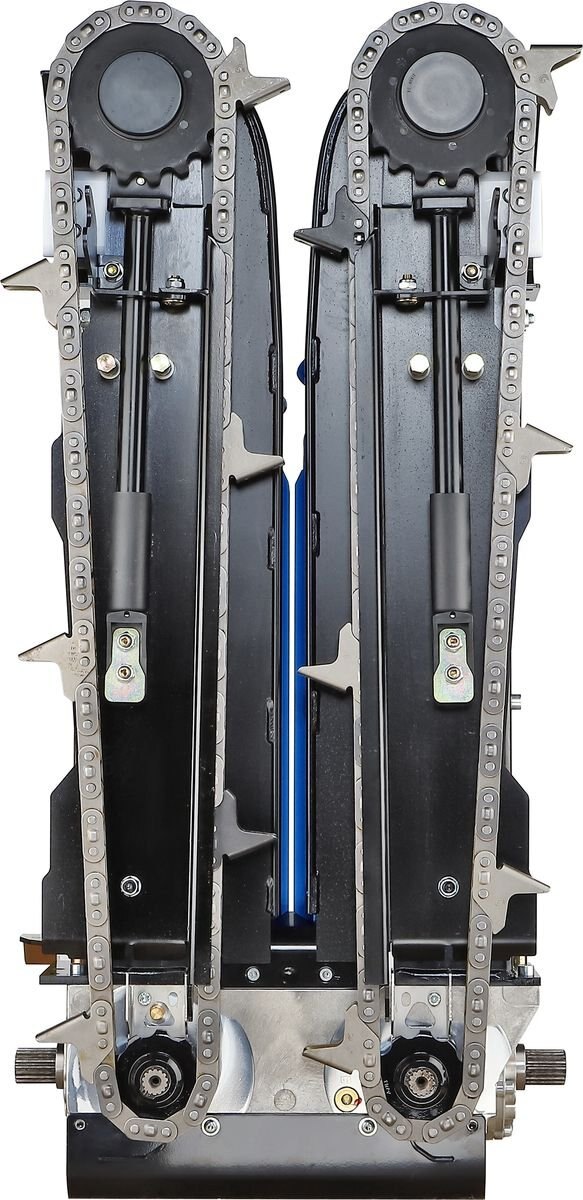 A unique gathering chain idea Always ready and perfectly tensioned The gathering chains are tensioned automatically. The gathering chain can be changed quickly and easily thanks to the Geringhoff special tool. As the chain tensioner is tuned to the patented sprocket, the driveline is protected from blockages caused by debris and gearbox failures are avoided. Geringhoff is the only manufacturer to offer automatic tensioning for the gathering chains. |