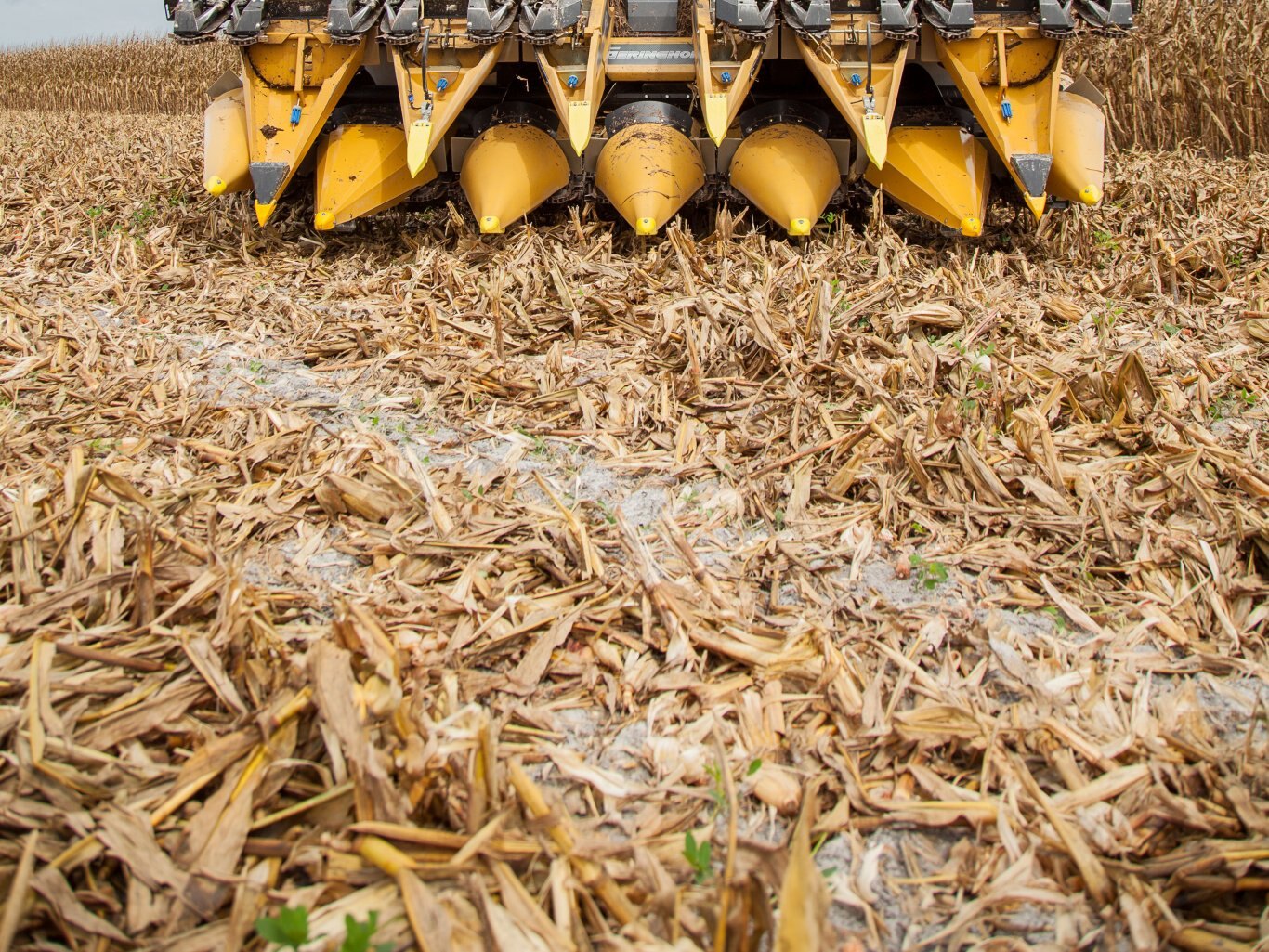 ![]() Two-roller system head with stripping knives Two counter-rotating snapping rolls, each fitted with four knife bars, aggressively pull the corn stalks downward in a controlled motion. This enables the deck plates to strip the corn cob off the plant. The unchopped corn straw remains in the field, protecting the soil from erosion. |