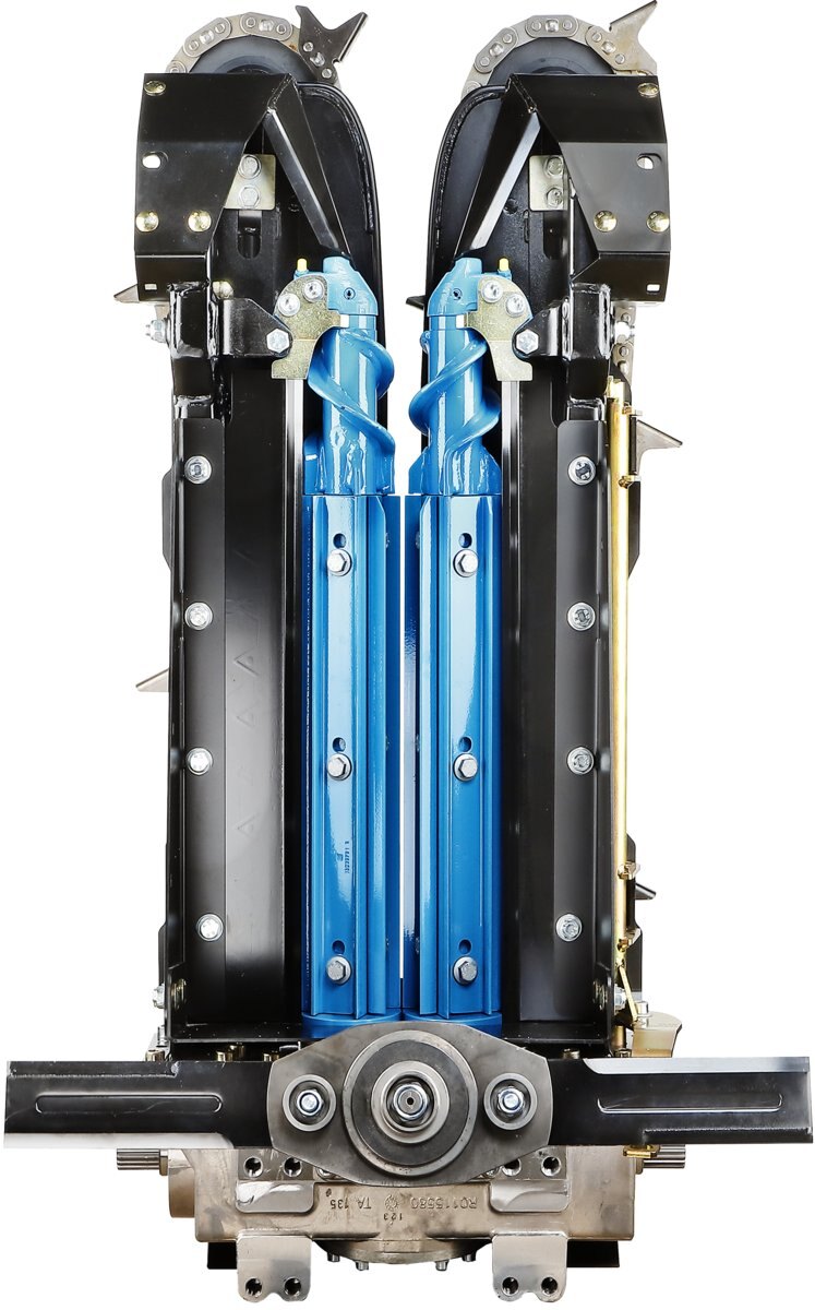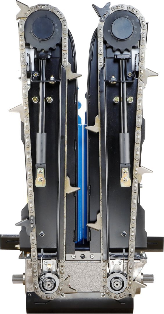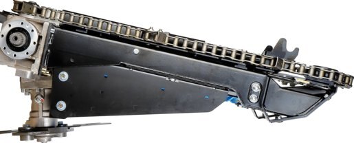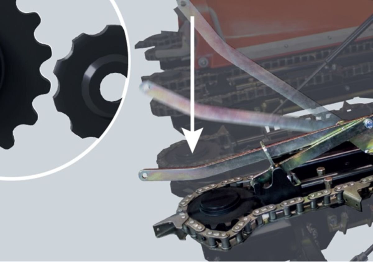 A unique gathering chain idea Always ready and perfectly tensioned The gathering chains are tensioned automatically. The gathering chain can be changed quickly and easily thanks to the Geringhoff special tool. As the chain tensioner is tuned to the patented sprocket, the driveline is protected from blockages caused by debris and gearbox failures are avoided. Geringhoff is the only manufacturer to offer automatic tensioning for the gathering chains. |