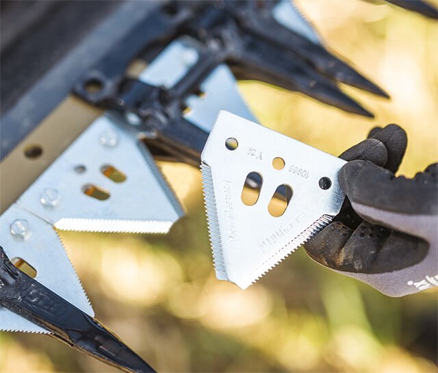 Still the Most Flexible DraperGeringhoff drapers are still the most flexible drapers on the market with a three-section flex-point frame and reel that can flex 4° up and 5° down, the TruFlex Razor provides a total range of 9° of flex. It also features a flexible cutterbar with 15,24 cm of ground contouring travel. The result is an outstanding draper that adapts and minimizes losses in all harvesting conditions. |