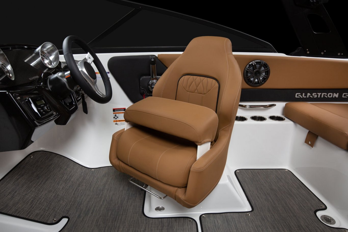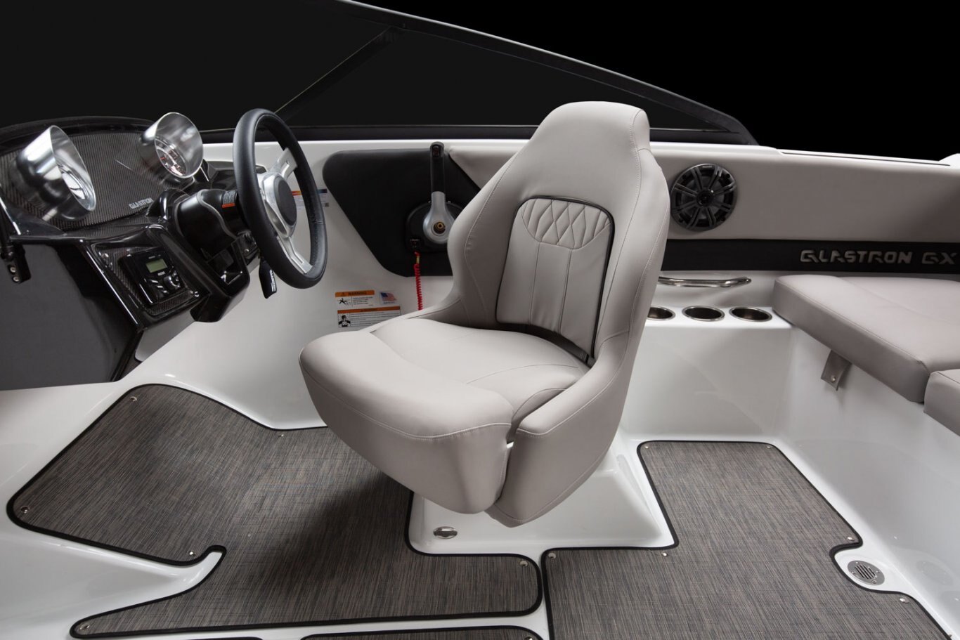 Glastron makes your time on the water enjoyable by thinking about all the small details, built-in cooler and cushion storage, finished under-seat storage, stainless hardware, beautiful, resilient upholstery, full-width swim platform with side-step and ladder. Simple. Comfortable. Usable.
