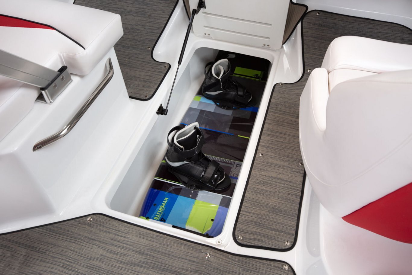 - Ski locker, in-floor, molded fiberglass finish, w/mat