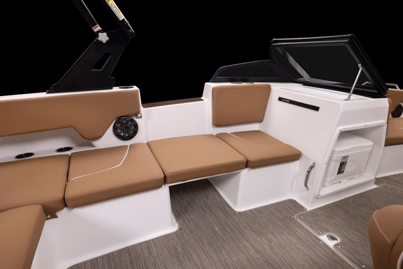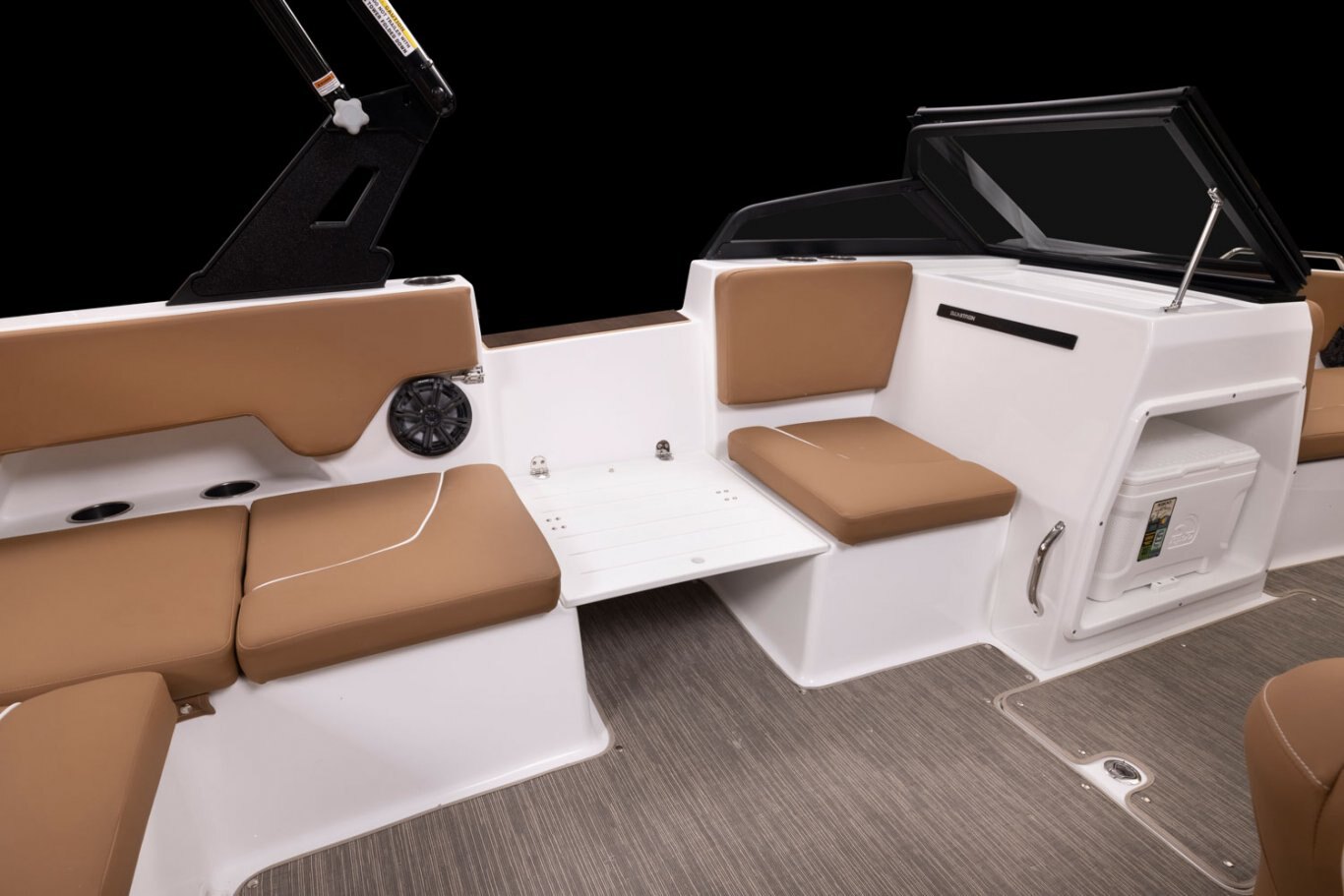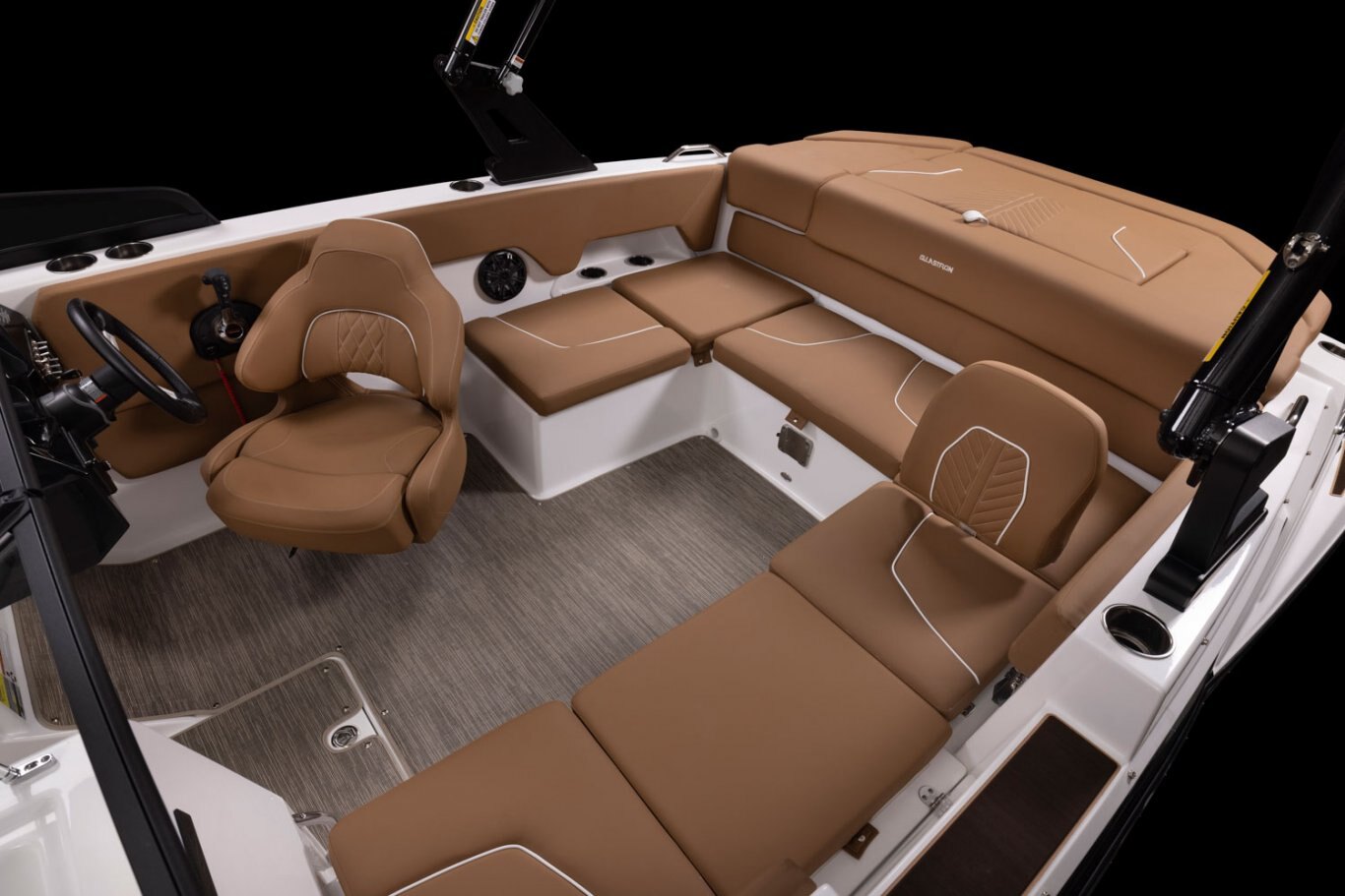 With sterndrive performance and an excess of deluxe features, the GTD 225 provides a perfect place for boaters to relax, lounge, and entertain. Beautiful interior fabrics offer cushy seating, while the widened floor plans significantly improve spaciousness and maneuverability. An extensive list of available accessories accompany the GTD 225, so you can truly make it yours. How about the wakeboard tower for added water sports play throughout the day; or, the stereo upgrade for variable LED backlights to set the perfect mood in the evening?