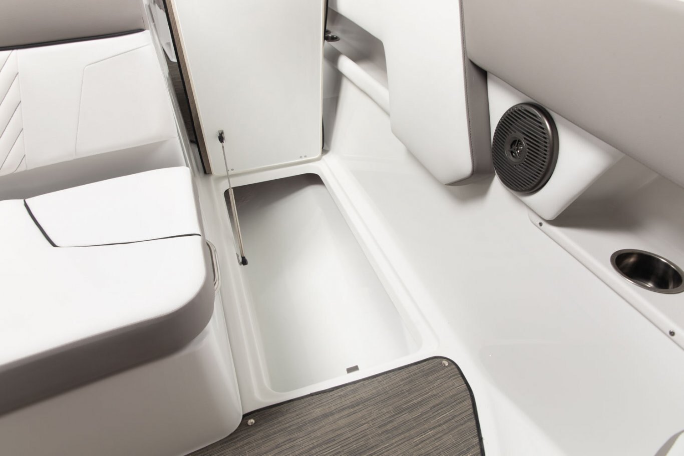 - Ski locker, in-floor, molded fiberglass finish, w/mat