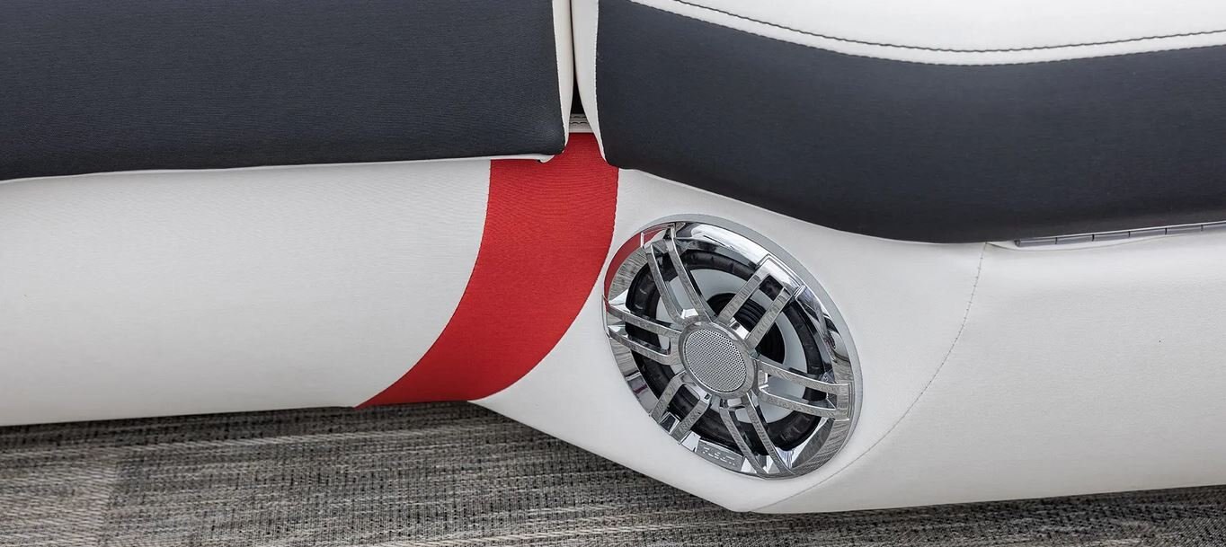 Stand out in the crowd and our versatile exterior and interior RGB Lighting Package, standard on Sanpan models. Packed to the brim with color options and underseat mood lights, courtesy lights, underdeck lights, underwater lights and speakers.