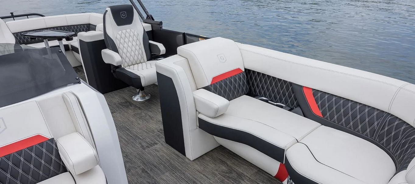 Stand out in the crowd and our versatile exterior and interior RGB Lighting Package, standard on Sanpan models. Packed to the brim with color options and underseat mood lights, courtesy lights, underdeck lights, underwater lights and speakers.