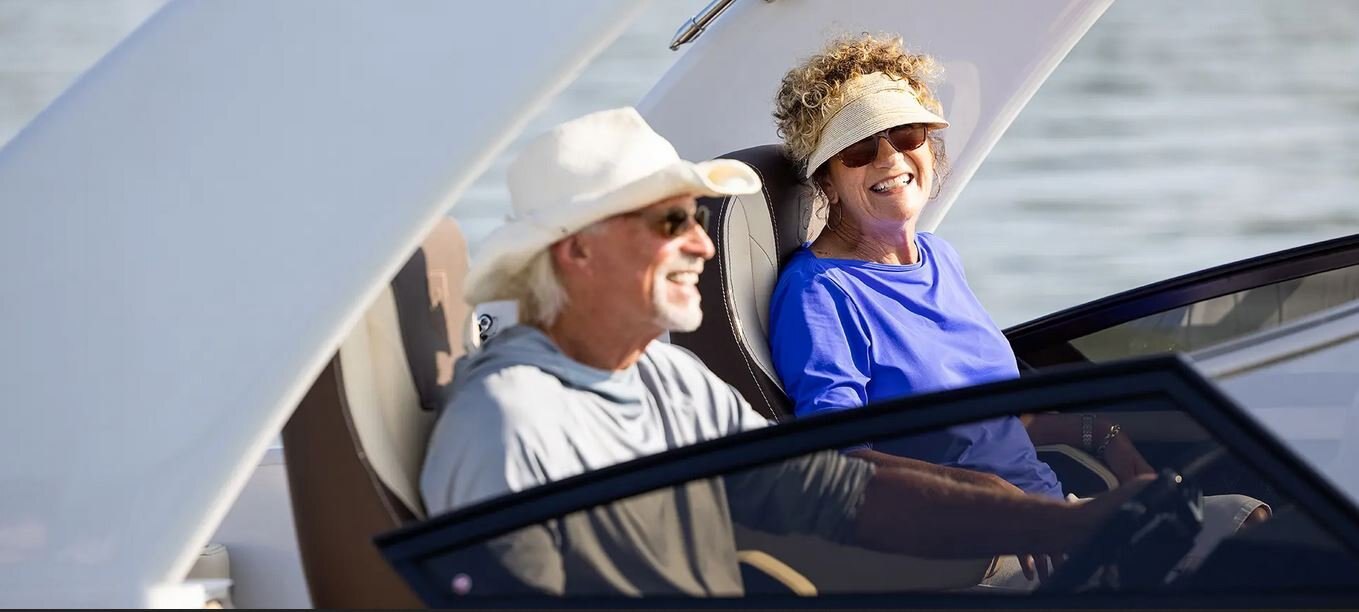Cut through wind with a perfectly contoured full wrap-around Windshield with convenient walk-through access that flips closed to keep you dry and comfortable. The sleek design adds sport-infused style and protection to extend your boating day and boating season on the water.