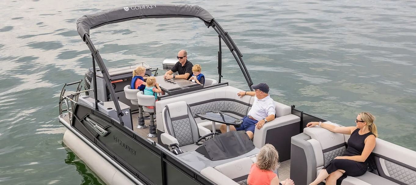 With Godfrey digital gauges and amenities you'll love for a lifetime, our Entertainment series takes the cake. Enjoy endless technology and entertainment on the water all day long to make your favorite memories even sweeter.