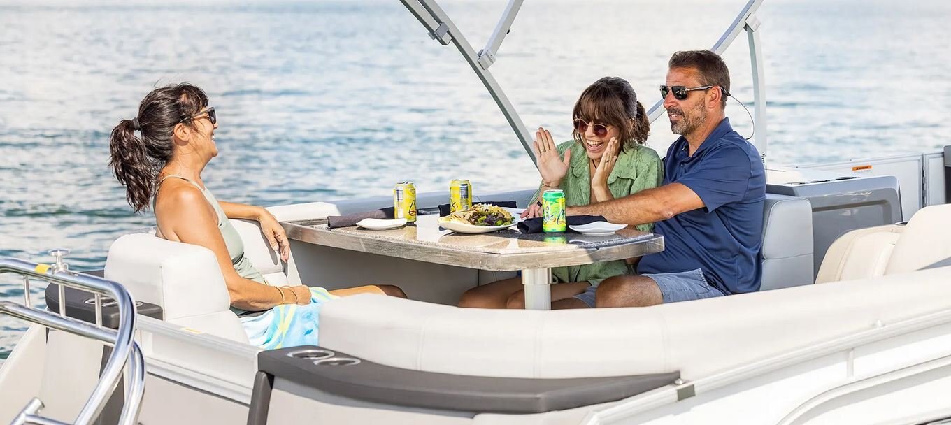 Entertain your favorite crowd with the multiple social stations found on our Center Bar Entertainer, Sundeck Entertainer or Midship Table models. Whether you're out for a sunrise brunch or sunset cruise, know you'll have room for everyone when you're out on the water.