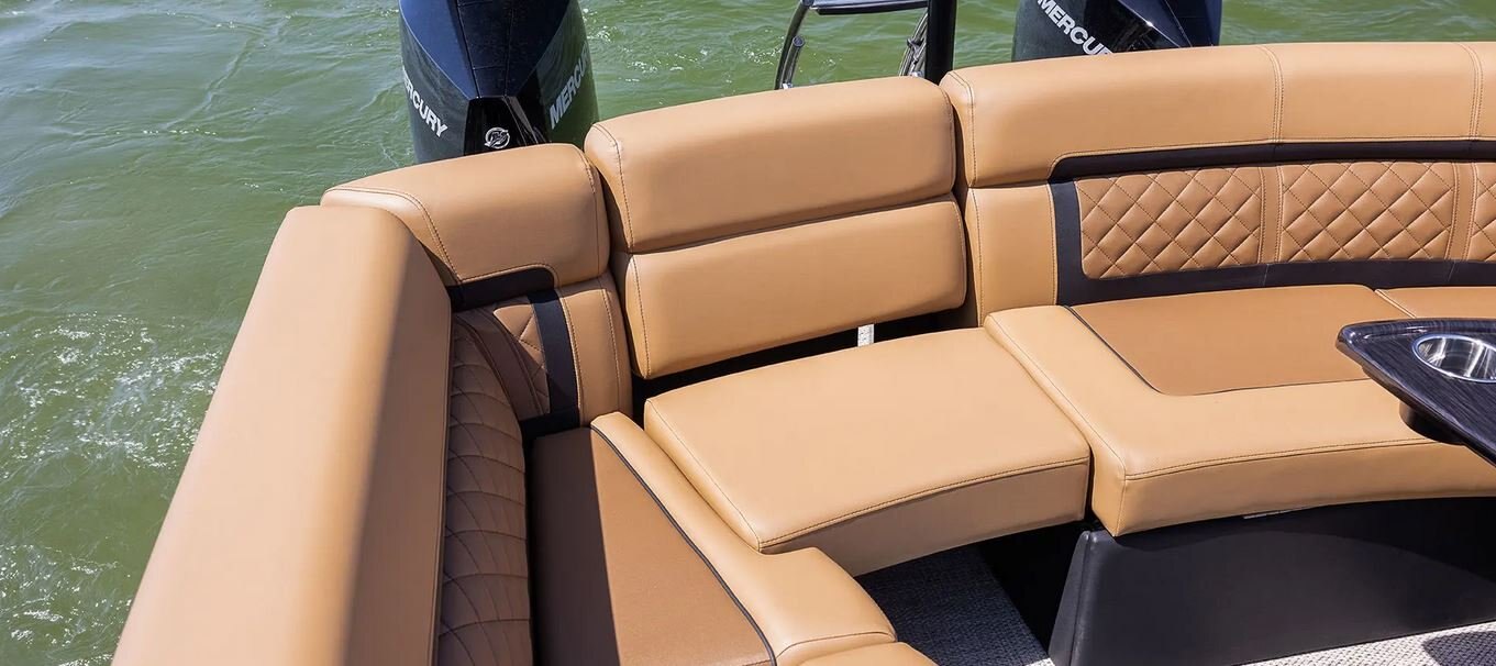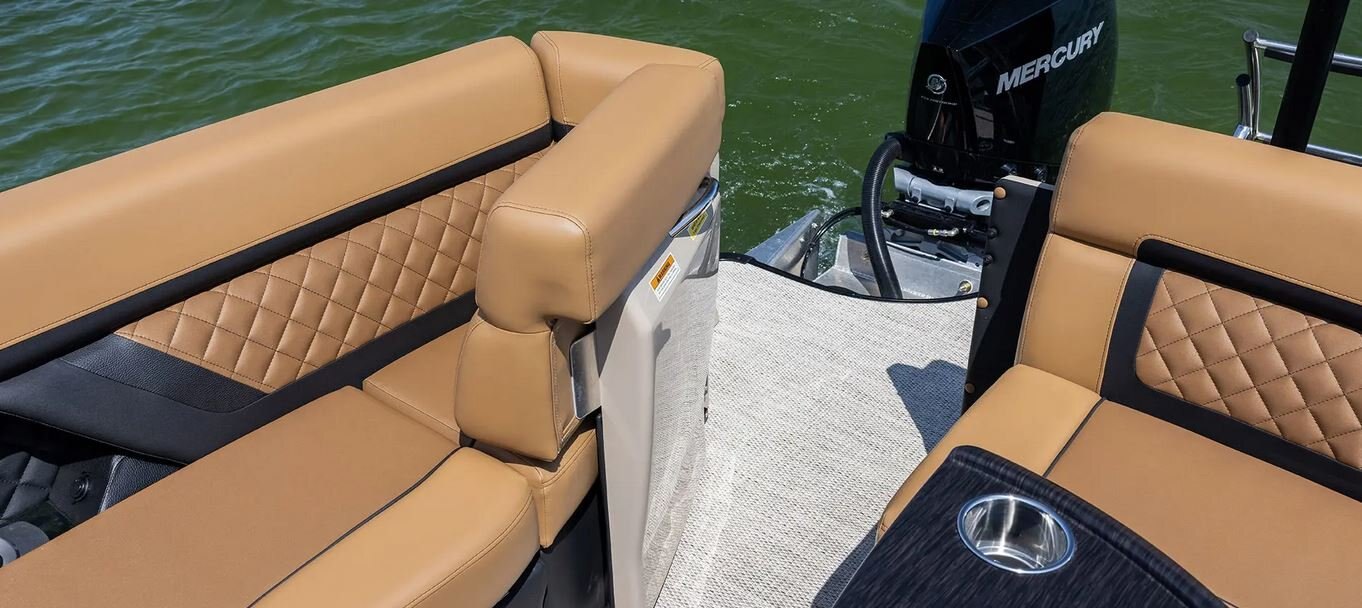 Kick back, relax and enjoy the comfortable Ultra-Lounge, Dual Flip Lounge, Single Flip Lounge seating on one of our AquaPatio Lounge models. Whether you're enjoying a sunrise brunch or sunset cruise, you'll enjoy every second on the water with our convenient stern table.