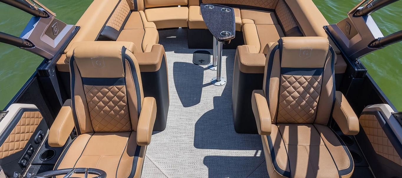 Kick back, relax and enjoy the comfortable Ultra-Lounge, Dual Flip Lounge, Single Flip Lounge seating on one of our AquaPatio Lounge models. Whether you're enjoying a sunrise brunch or sunset cruise, you'll enjoy every second on the water with our convenient stern table.