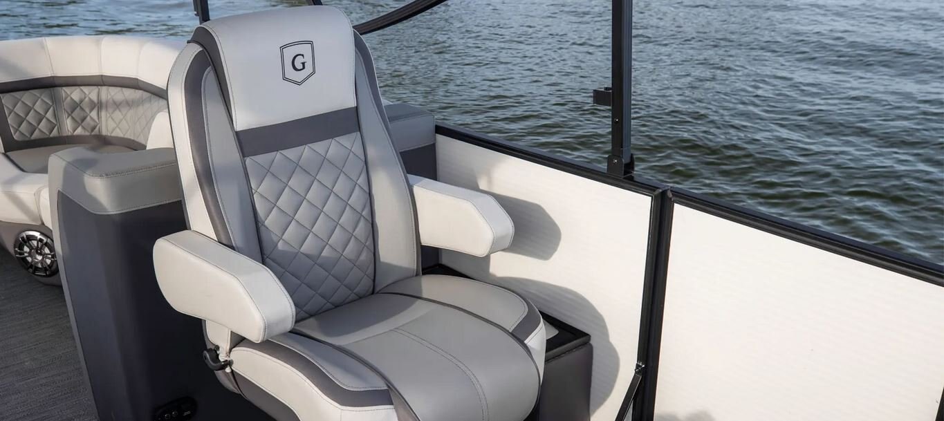 There is only one thing better than taking command of an AquaPatio Split Bench from the comfort of our purpose-built captain’s chair: doing it with a friend. Our available co-captain layout features an identical port located chair with 360-degree rotation, height and seat-back control and adjustablAll The Options!e armrests.