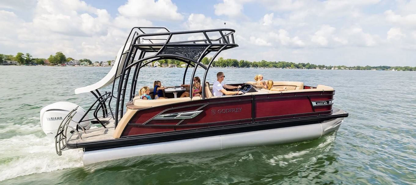 Entertain your favorite crowd aboard one of our AquaPatio SunDeck models. With optional Entertainment Center with sink with faucet and integrated lid, pull-out trash can, and many more amentites, yout day on the water will be more convenient than ever.